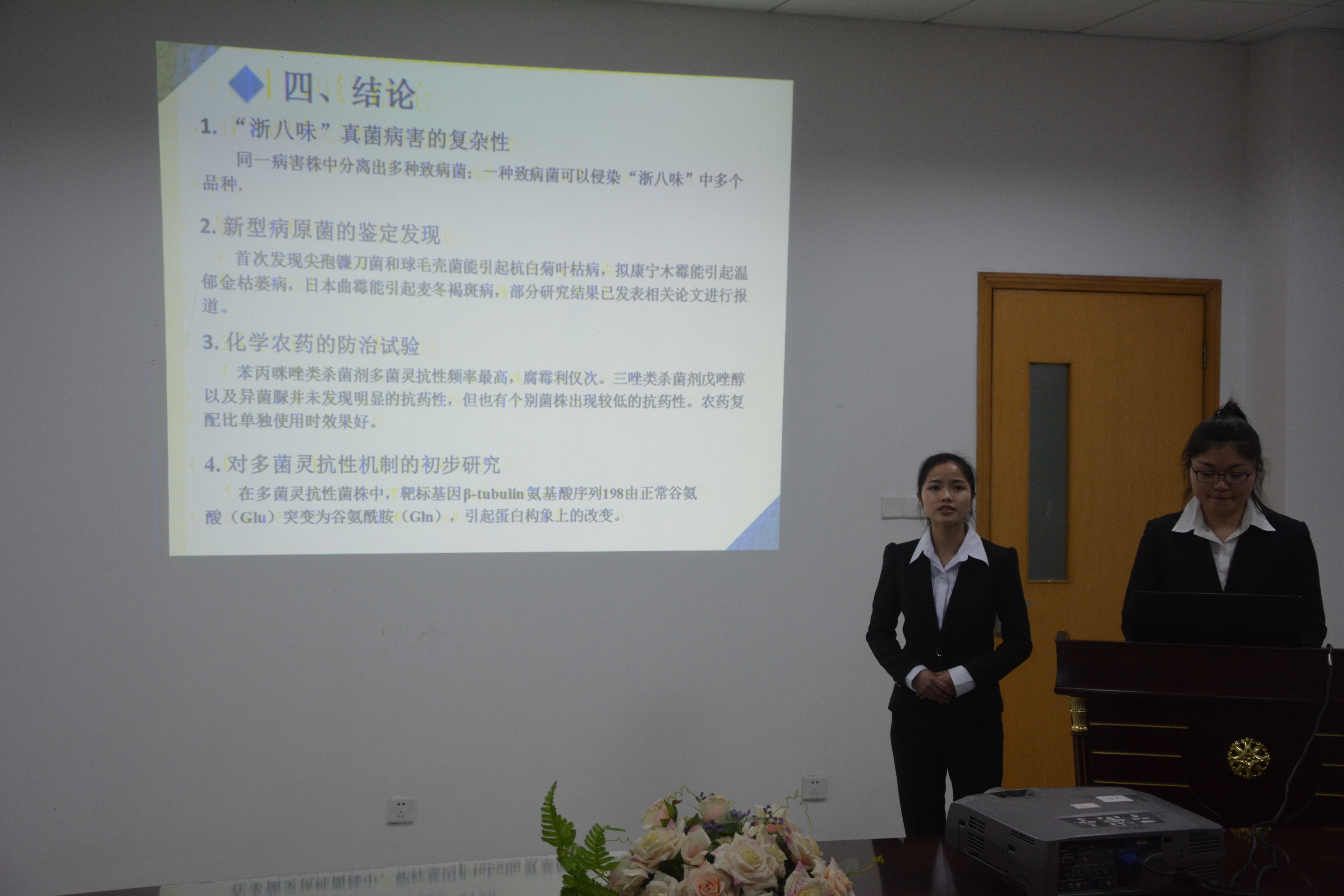 本次答辩会分为选手自由陈述和评委提问两个环节,评委综合选手在两个环节的表现进行打分。参加答辩会的选手以5分钟PPT的形式向评委以及同学汇报了研究成果。在答辩过程中,既充满了科研的严谨性,其中也不乏有老师幽默的提问方式,给原本紧张的科研答辩会增添了几许润滑剂,使此次答辩会张弛有度,有条不紊。老师们在提问中为同学们提供了很多宝贵的经验以及答辩的技巧,并且以敏锐的视角给同学们提了很多建设性意见。课题作者也在此次答辩会中展示了自我的实验研究成果,为我们的日常生活提供了很多具有建设性和指导性的启示。