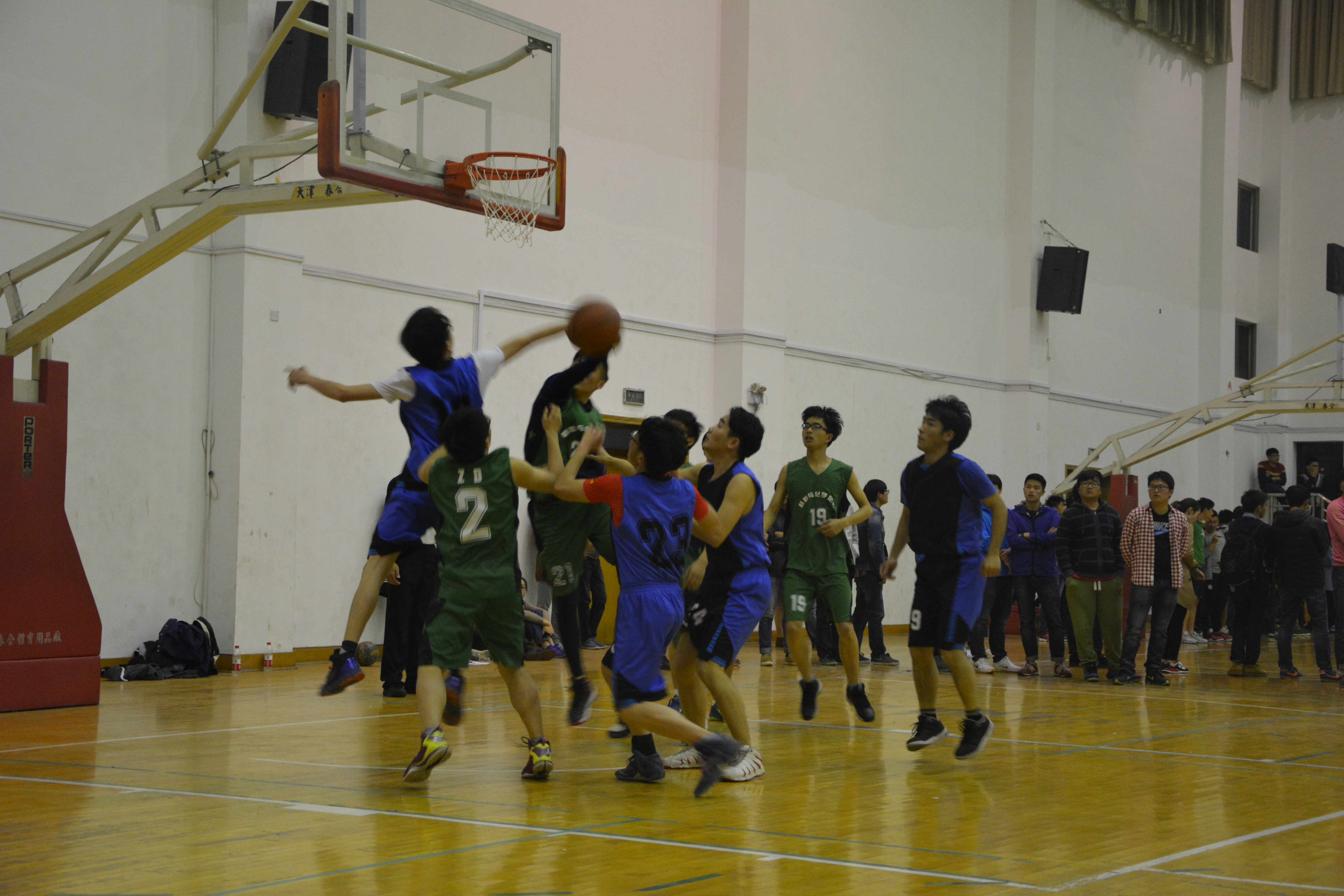 下午7时许,在经历一番热身后,身着黑色球衣的生科队员与披着绿色队服的材化队员的男篮比赛正式开始。比赛伊始,双方队员便集中精力,全身心投入比赛。进攻,防守,来回交替,投篮,盖帽,你来我往。偶尔一个精彩的上篮或者一个精准的三分就赢得了满堂喝彩。比赛场上回荡着一个个战士们的咆哮,队员们也挥洒着努力的汗水,双方比赛异常激烈,观众们也热情高涨,加油声此起彼伏。经过一个小时的竞争,最终生科院以6分之差惜败。