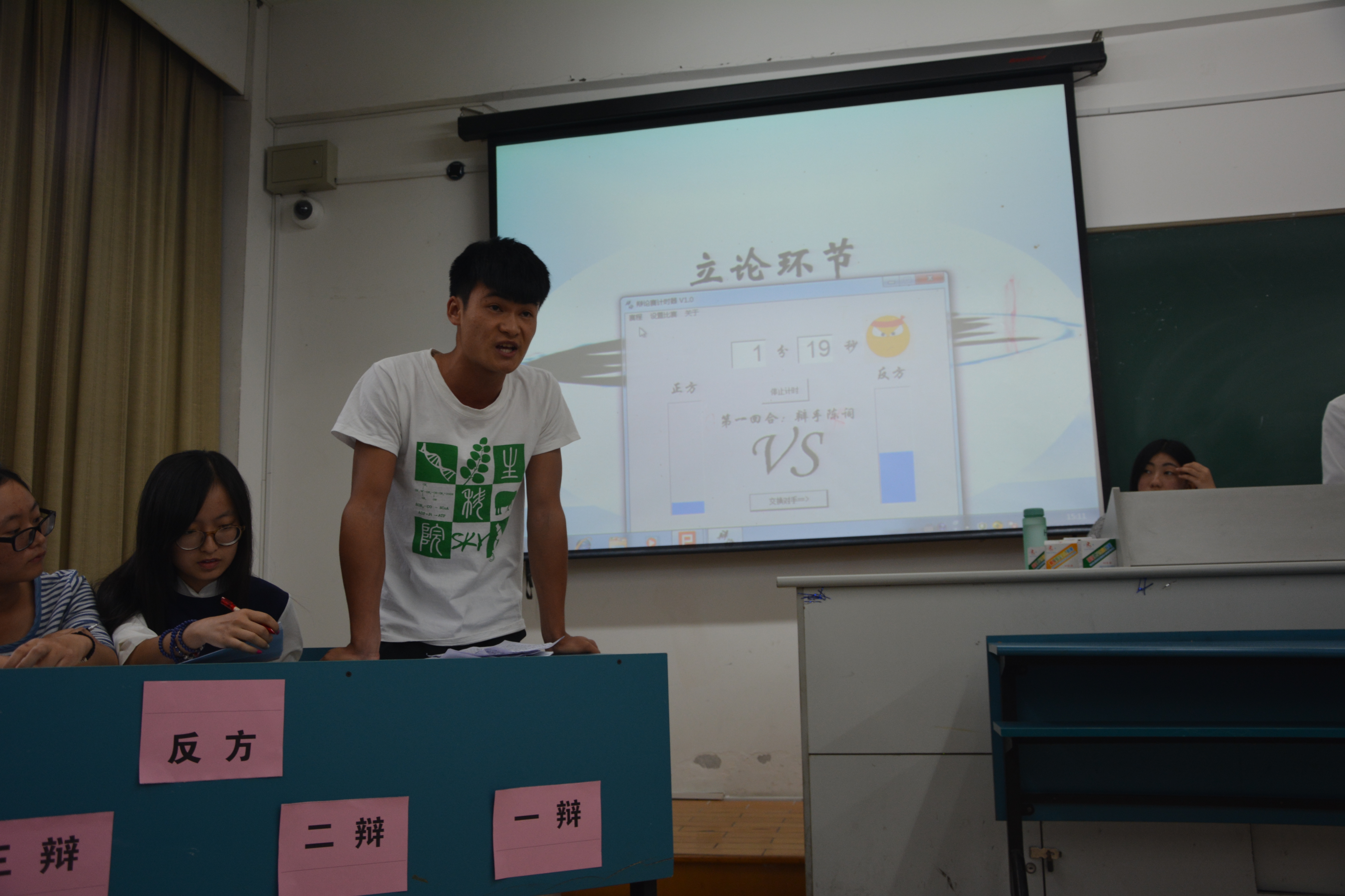 第一场辩论赛在3点正式开始,围绕“大学生该不该做兼职”这一辩题展开辩论。正反两方分别由来自生物科学专业和环境工程专业的同学。通过沉着冷静的辩手陈词,针锋相对的攻辩,紧张激烈的自由辩论以及言简意赅的辩手总结这四个回合,双方的精彩表现征服了在场的观众和评委。经过评审团的商议,反方二辩获得“最佳辩手”的称号,正方获得本场辩论赛的胜利。
