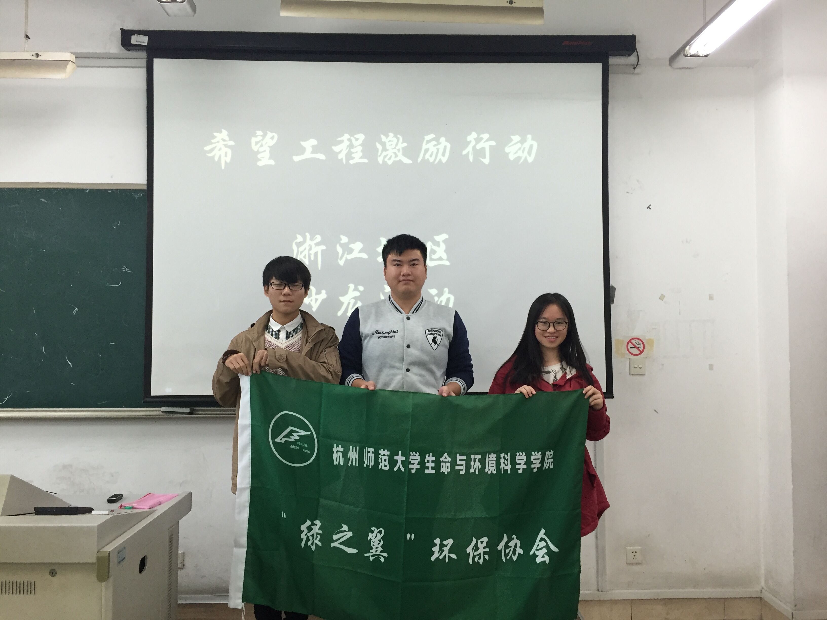 2015年11月21号下午,"绿之翼"环保协会三名成员参加了在浙江工业大学举行的2015希望工程激励行动分享交流会。出席此次交流会的项目组还有浙江大学心暖晨曦项目组、浙江工业大学灶画回忆项目组、浙江工业大学“急时雨”急救知识进社区项目组、浙江音乐学院“音之愿”项目组和浙江中医药大学“iHuan”项目组。