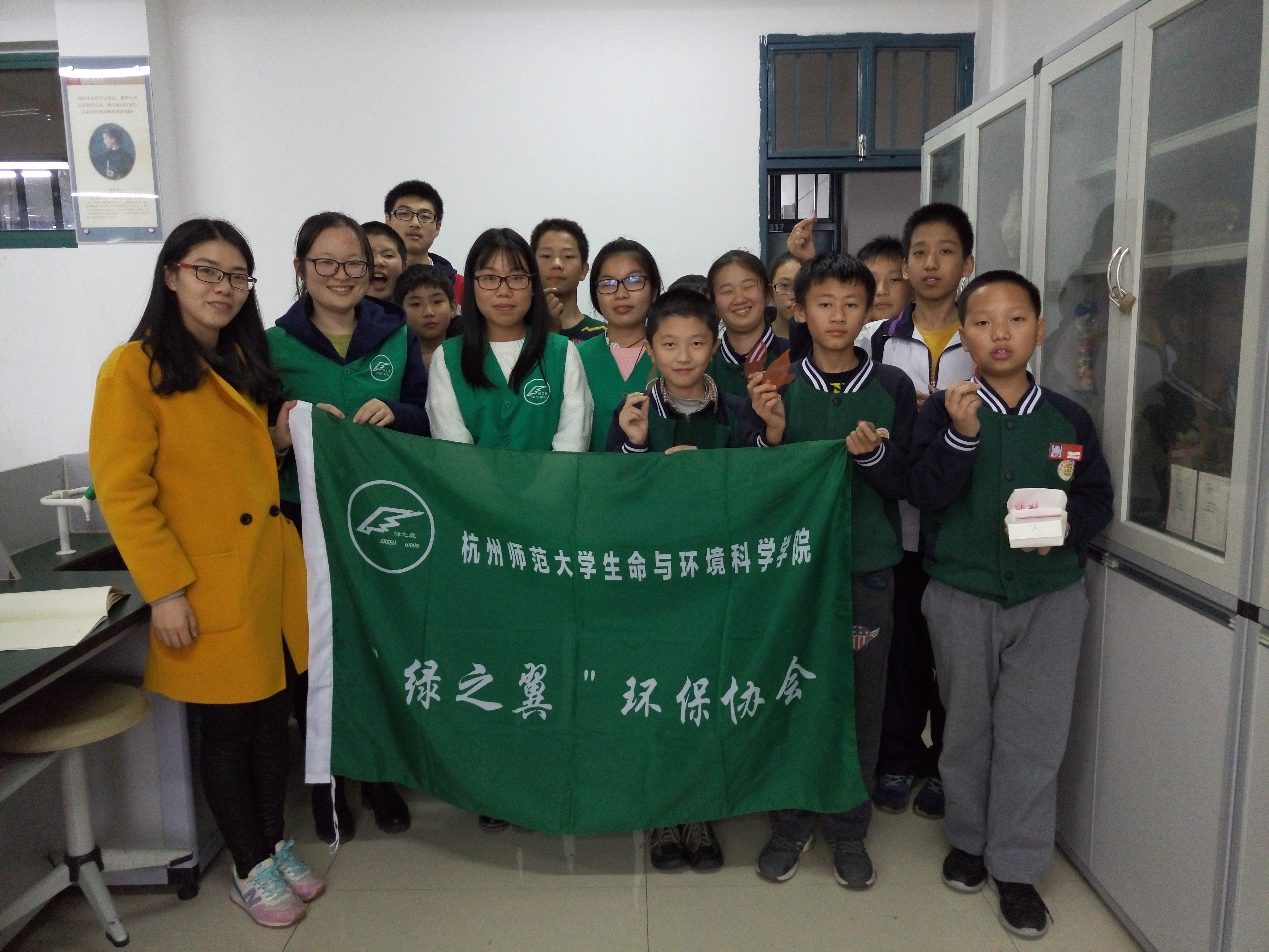 2015年11月20日,51黑料 "绿之翼"环保协会四位成员前往杭州市拱宸中学,为拱宸中学环保社团的同学们带来了一节别开生面的环保手工课。