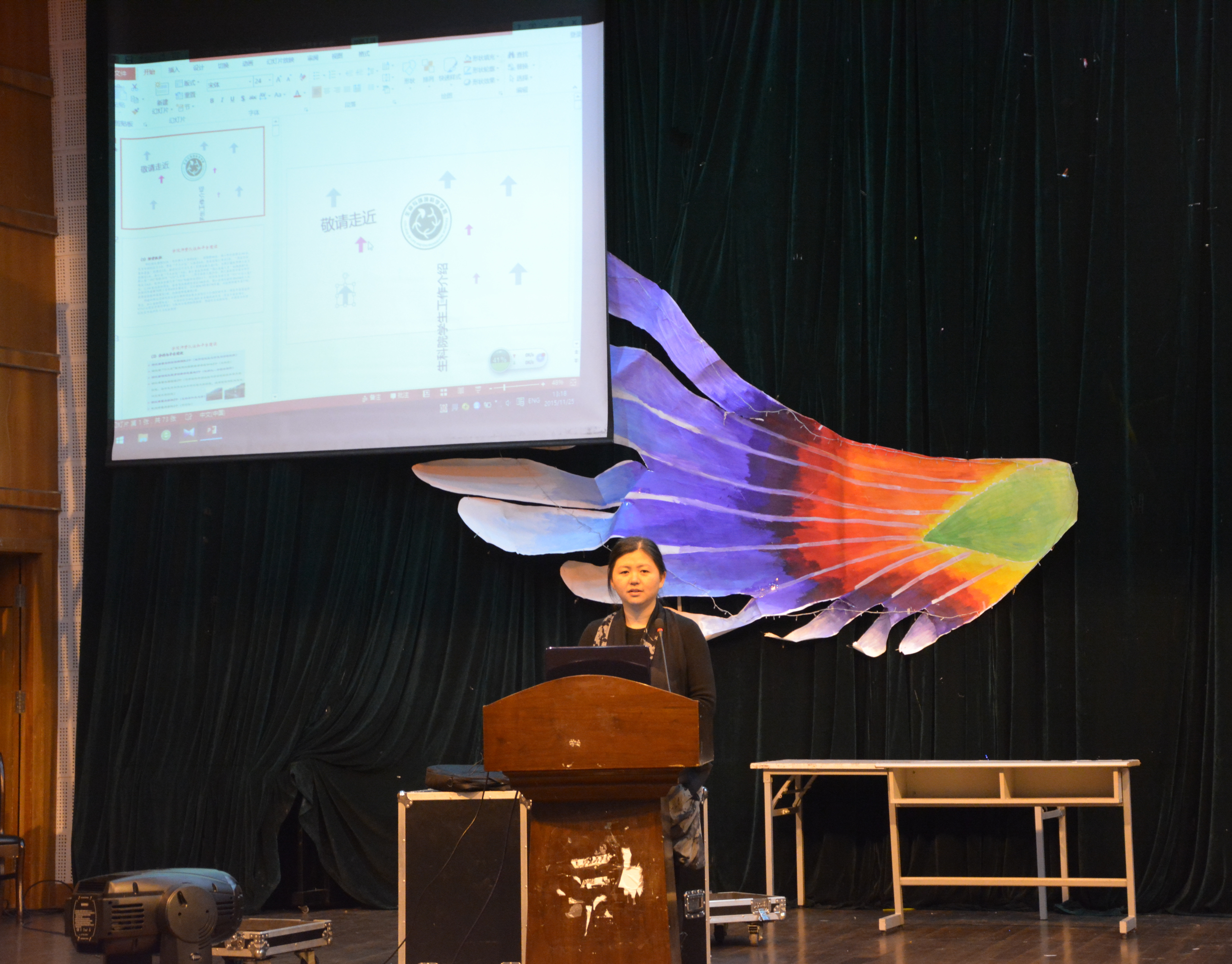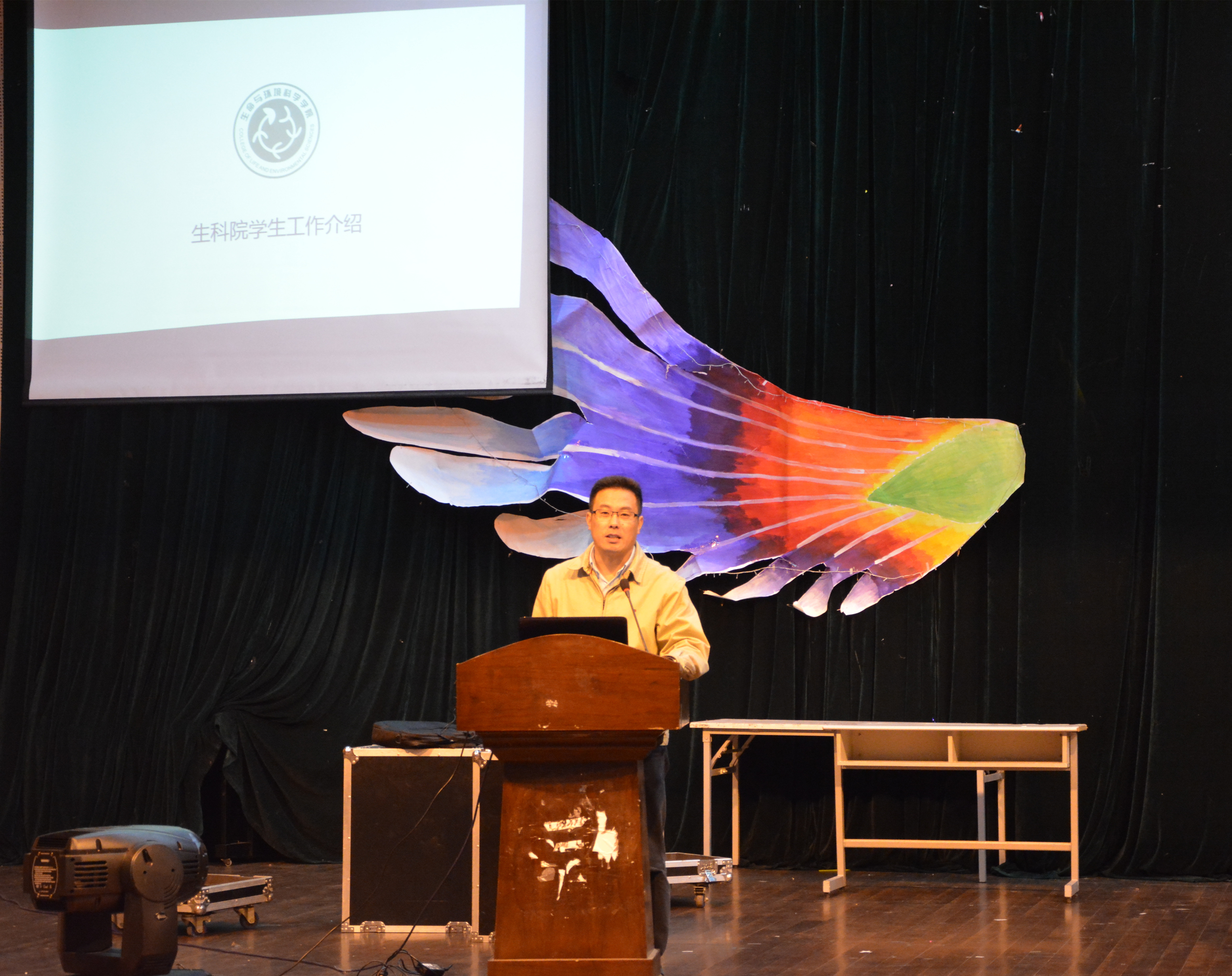 随后院党委副书记金岳祥上台详细介绍了生科院学生方面的工作,大体包括学院师资队伍与平台建设,学院的一流设备,课程设置,社会实践活动,学风建设等方面。在此基础上,他向大家强调了学习的重要性,并提醒广大的生科学子,在考试来临之际要以学业为重,以取得更好的成绩,为生科院争光。最后,院党委书记周春儿对此次大会进行了总结,并表示她期待看到越来越多的生科学子可以在之后的学习、竞赛中有更优异的表现,并希望大一的新生也能参与到实验工作中,获得课堂以外更多的技能。