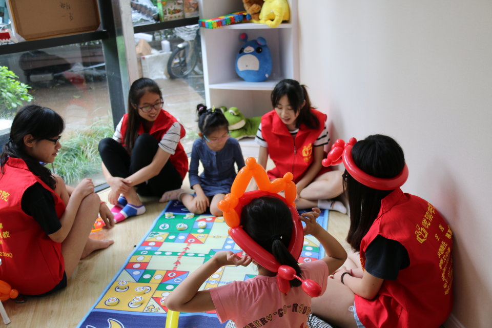 随着准备工作的完成,也逐渐有报过名的家长带着孩子来到书院。为了把更完整的学院展现在家长面前,我们分配了各自的区域任务,前台的同学向家长们深入介绍孩子们在书院一天的生活安排;大厅的同学从父母的手中接过孩子,引导他们熟悉书院的环境,安排先到的学生到活动室自由活动,由负责的同学带着孩子们玩拼图玩飞行棋,在游戏中相互认识相互熟悉,也有利于日后的学习生活。游戏之余,我们给小朋友们带去水果和糕点,并陪同观看了电影版的《小王子》,让他们以更丰富的方式去学习更多的知识。我们能够给孩子们带来快乐,也是给家长一个放心,一天的工作更是对自己的一种锻炼和磨砺。与孩子之间的相处是一种完全不同的体验,让我们感受到阔别已久的童真和快乐。
