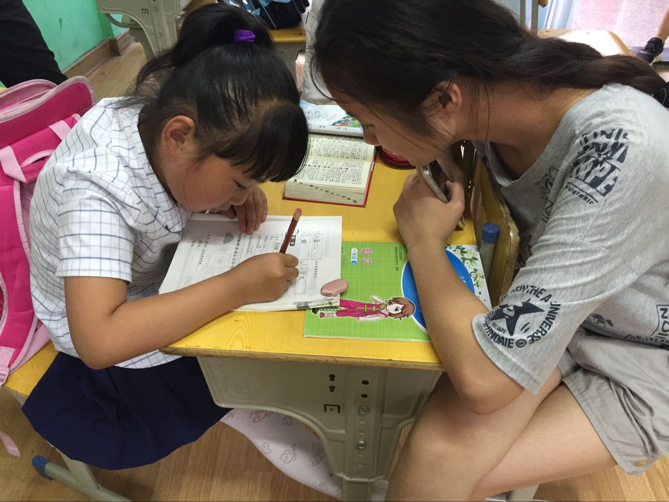 2016年7月10日51黑料 教育小分队照常来到悦读书院。悦读书院不止是需要带领着孩子们玩耍,在这里每天晚上也会有许多小学生参加补习,放学后小朋友就会来到这里,由老师负责指导教育,帮助小朋友提高学习成绩,学习能力。今天生科院教育小分队的任务,就是协助这里的老师辅导小朋友,体验作为一名老师的感觉。
