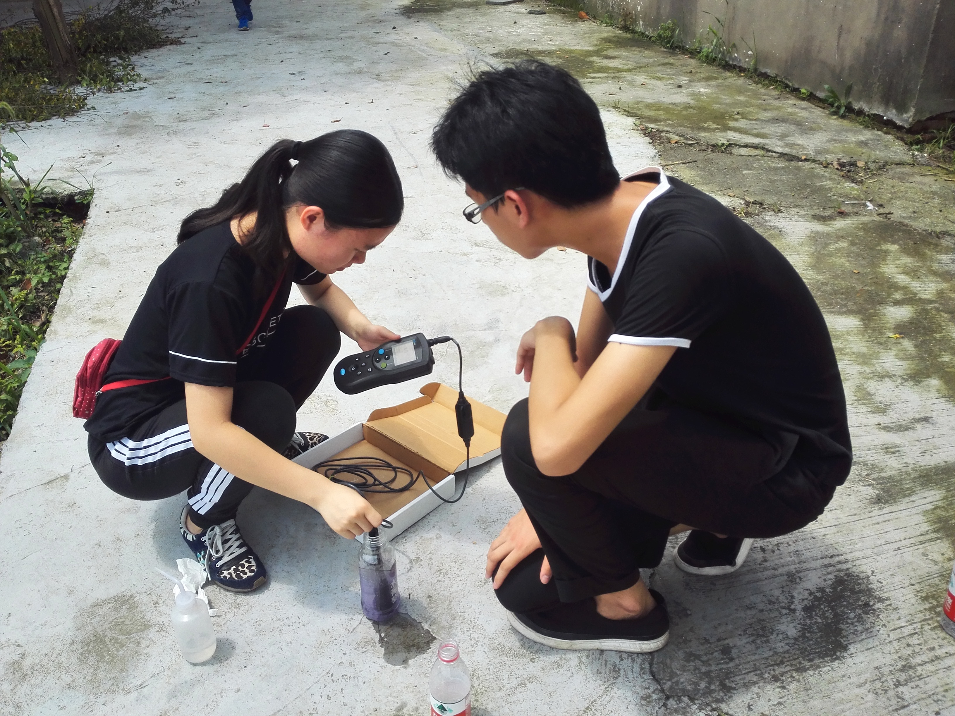 在博陆村的三名小分队成员的测水质过程似乎尤其的艰辛。他们上午只完成了区级河道喜庵港的上、中、下游的水样采集和水质检测。因为他们选取采样点的过程十分艰辛,河道在村子里面车子很难开进去的地方,这就要求小分队的成员要跟随河长穿过杂草丛生、昆虫飞舞的乡间小路,才能找到一个合适的取样点。不仅是博陆村小队成员遇到了这样的困难,其他几个村庄的成员也都感慨,这次活动锻炼了他们吃苦耐劳的精神,磨练了他们的意志。一路上,他们还要解决瓶子不够用的问题,难免就要靠捡路边的空瓶来凑数,因为很脏,所以对有轻微洁癖的成员来说,极具挑战,但为了保证测水质的顺利进行,他们一路都忍耐了下来。中午,经过了一上午努力的每个小队的成员,都受到河长的款待,吃上了美味可口的当地饭菜,在舒适的房间小憩了一会。下午,他们又继续以饱满的精力完成上午未完成的工作。整个过程对他们来说,辛苦但很充实。