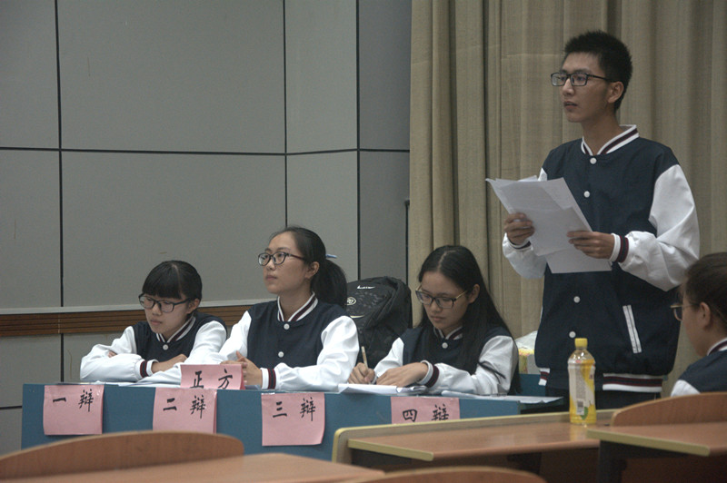 正反双方精彩的开场立论赢得了现场热烈的掌声。攻辩环节中,正反双方个个信心十足,他们妙语连珠,辩论赛俨然进入了白热化状态。自由辩论环节辩论极其激烈,双方的旁征博引不禁让在下观众发出阵阵掌声。在总结陈词环节,双方四辩针对对手逻辑上的漏洞逐一回击,思路清晰,引经据典,才思敏捷。
