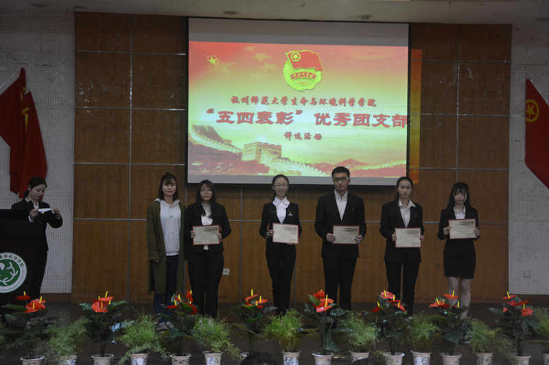 很快就到了最激动人心的环节——颁奖仪式。本届“五四表彰”优秀团支部被生技162、生技152、食安151、环工161、生科151以93.70、93.10、92.13、91.70、90.73的分数夺得。
