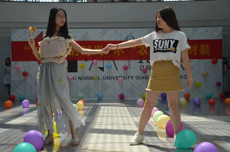 每件作品都是由设计师亲自缝纫,耐心装饰而成。模特展示设计作品结束后,评委们给设计师同学一一提出了宝贵的建议并赞扬了他们环保的精神。最后经过评委们认真仔细的讨论后:生技161荣获一等奖,生技162荣获二等奖,食安161、生科161及环工161荣获三等奖。