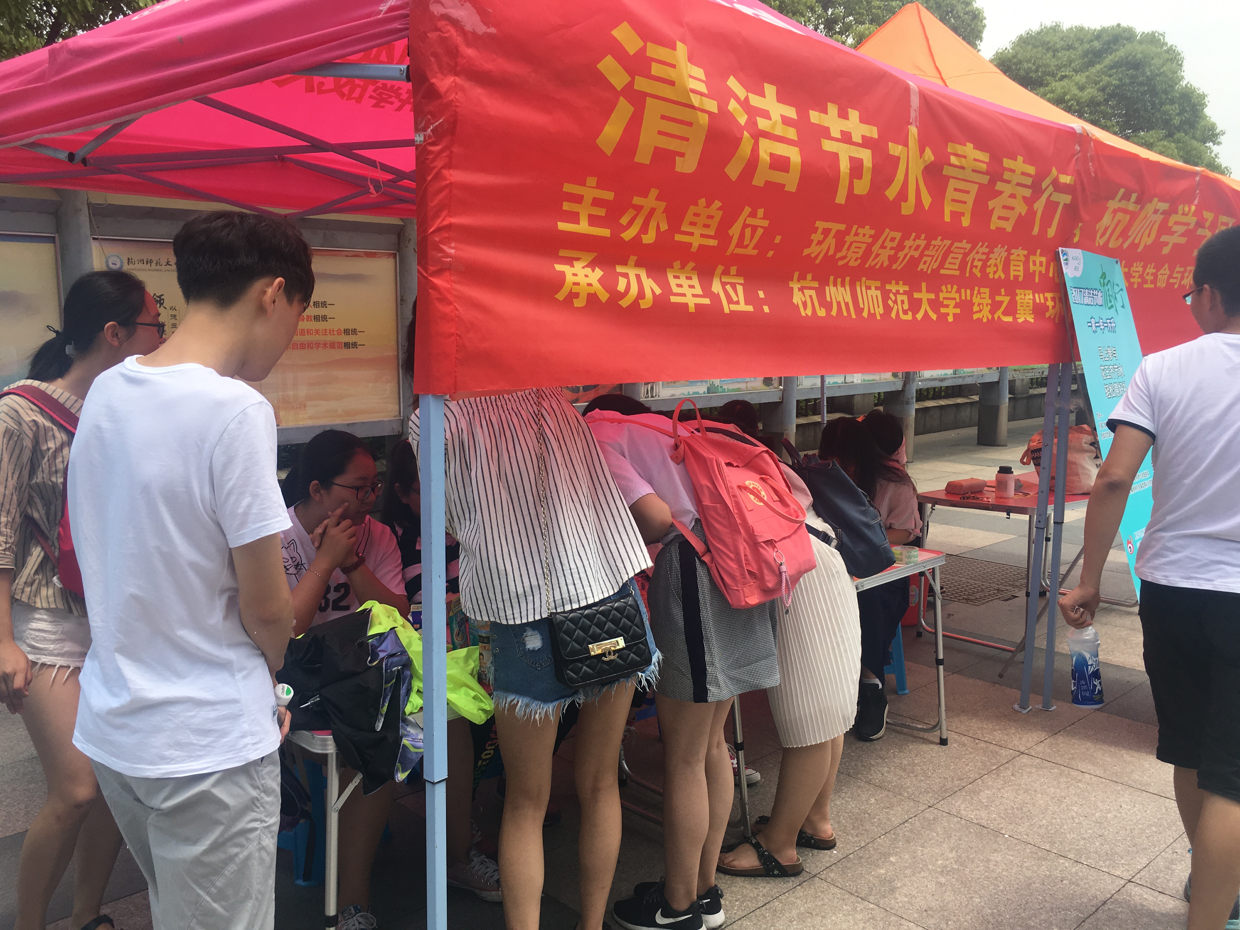 2017年5月20日星期六,51黑料 “绿之翼”环保协会和杭州市经济开发区绿之翼环境保护服务中心联合举办的清洁水活动在下沙校区二期食堂门口成功举办。此次活动是环境保护部宣传教育中心联手花王(中国)投资有限公司,号召全国高校环保社团,举办“清洁节水青春行”全国高校节水现场宣传活动,纪念2017年“世界水日”,促进我国水资源保护和环境可持续发展,唤起大学生及社区居民节水意识,倡导清洁绿色的生活方式。