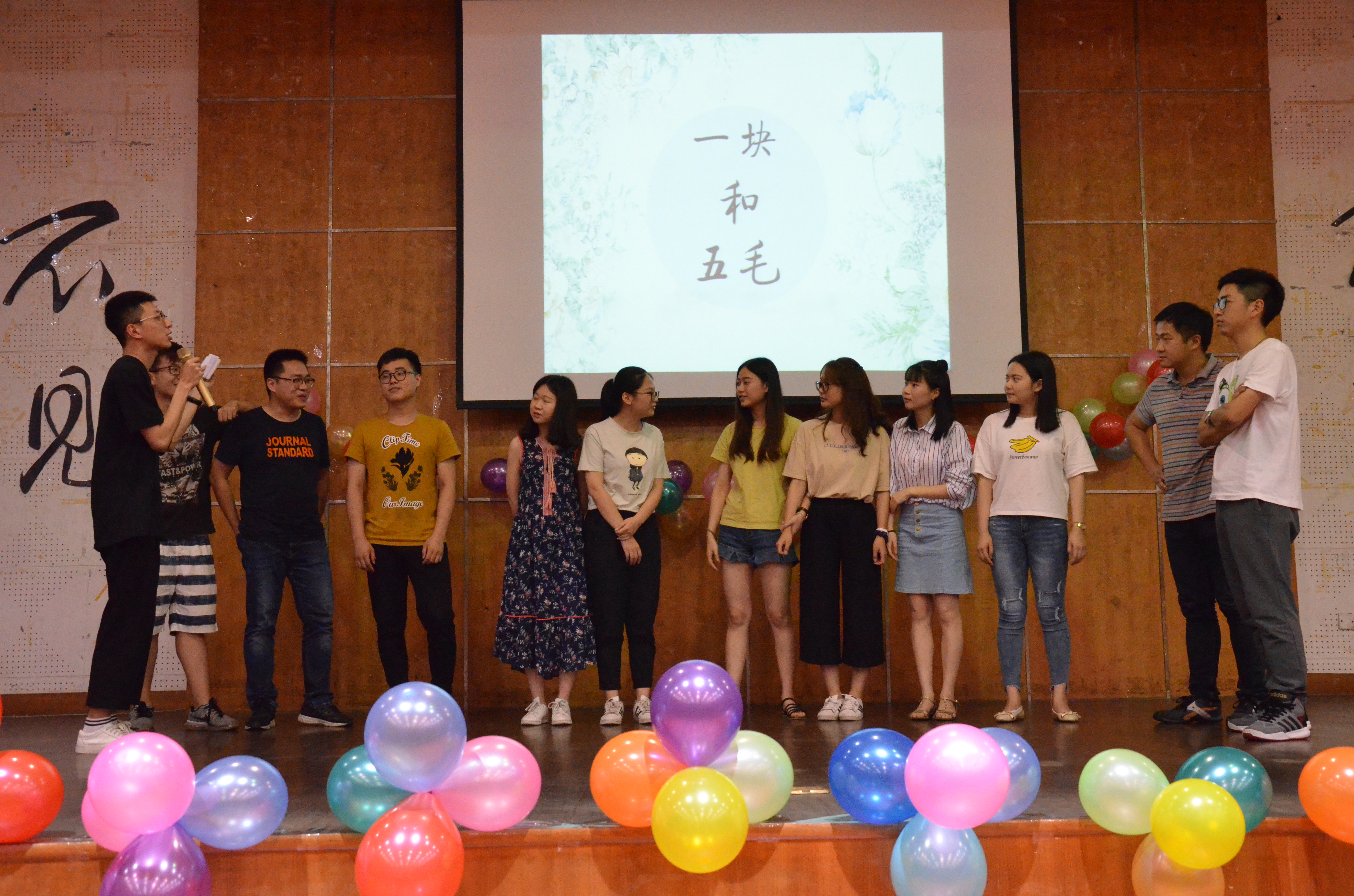晚会开始由斐东东献上了一只动感十足的舞蹈《HOZIN》,点燃了全场的氛围。然后进入了晚会的游戏环节,在第一轮游戏“一块和五毛”中,场上的各班代表由一开始的羞涩谦让,主动下台,到最后的灵活机敏,迅速抱团,中间发生了许多哄堂大笑的事件,现场渐渐沸腾起来了。紧接着的是双人夹气球的游戏,其中一个由室友组成的小队,配合默契,健步如飞,飞快地夹着气球来回,最终赢得了本次比赛。激烈的游戏让同学们忘记了即将离别的感伤。随后,一段毕业告别的视频又让同学们热泪盈眶,满满的回忆,以及来自辅导员和班主任的祝福,令人难以忘怀。为了让大家铭记此刻的感受,工作人员特意为大家准备了时光信,一年后将为大家准时寄出,希望大家不忘初心,方得始终。最后由张亦楠同学演唱的《房间》以及林铮霓同学演唱的《年轮》,让即将离校的同学们回忆起了曾经共度的一幕幕画面。最后大家将写好的信投入信箱中,带着不舍和欢乐离开了现场。