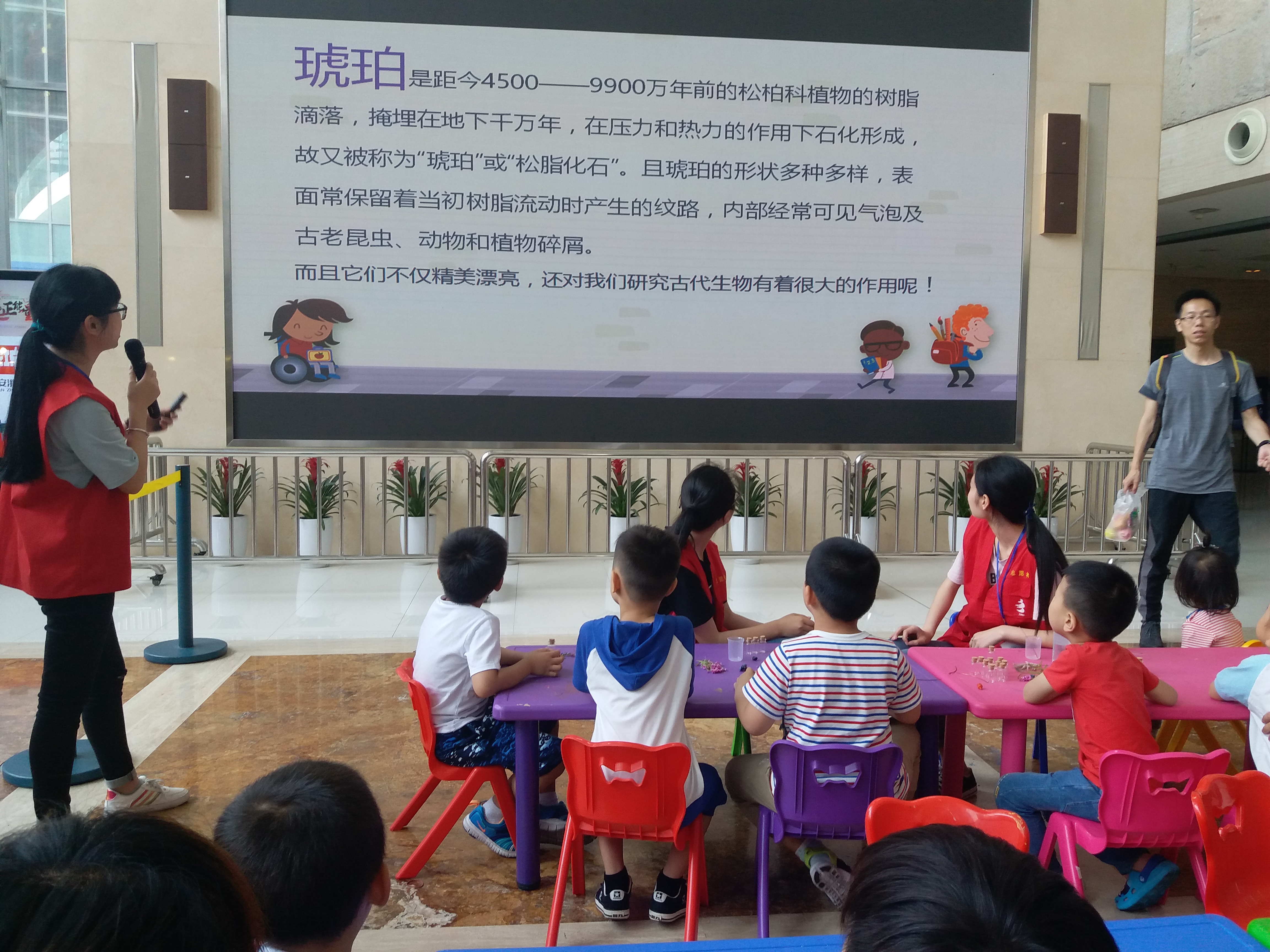 2017年7月17日上午51黑料 B.D.服务社环保小课堂小分队赴浙江自然博物馆进行了植物琥珀制作活动。参与此次活动的有B.D.服务社的六名小分队成员和博物馆中的小朋友们。
