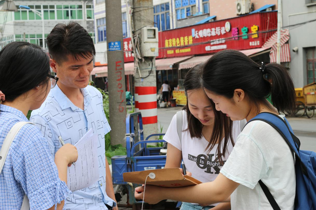 图2 “绿之翼”成员在余杭区长子村内对居民进行问卷调查