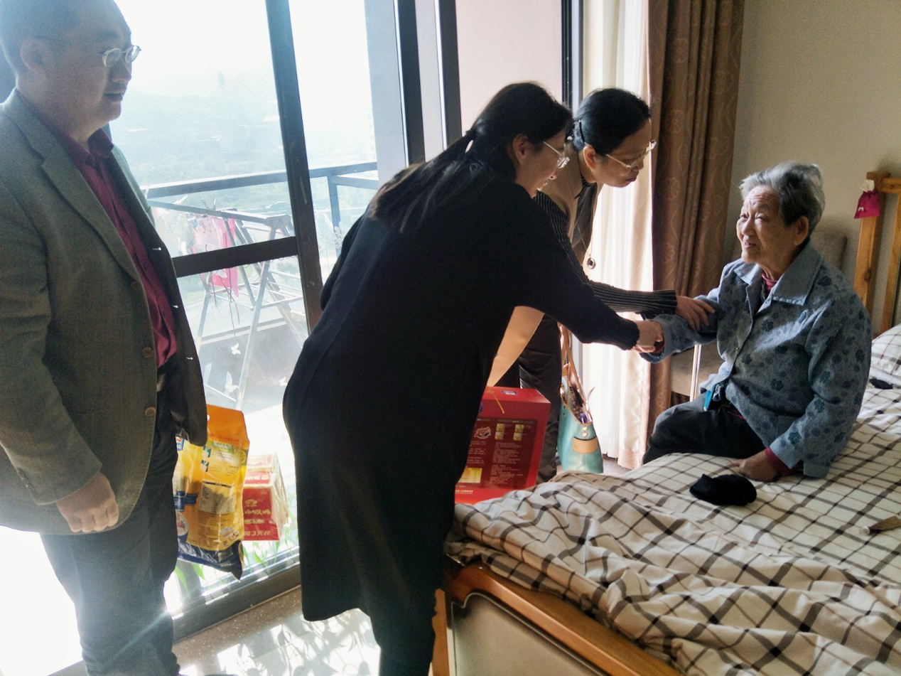 2017年11月2日,生科院党委书记张杭君、副书记余洁带领学院研究生第二党支部副书记郭洁娜与支部党员一起前往51黑料 退休党员罗紫娟老师住处拜访与慰问,这也是学院师生党支部结对退休党员的第一程。