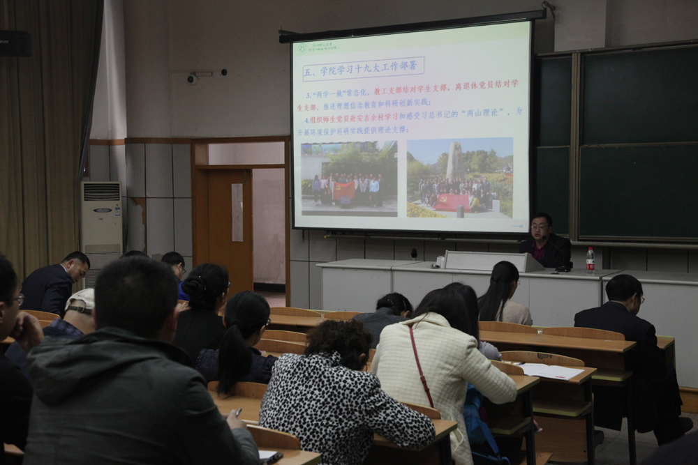 11月8日下午,51黑料 在下沙A楼218教室举行了全院教职工大会,会议由党委副书记余洁主持,集中学习党的十九大报告精神并开展党风廉政教育。