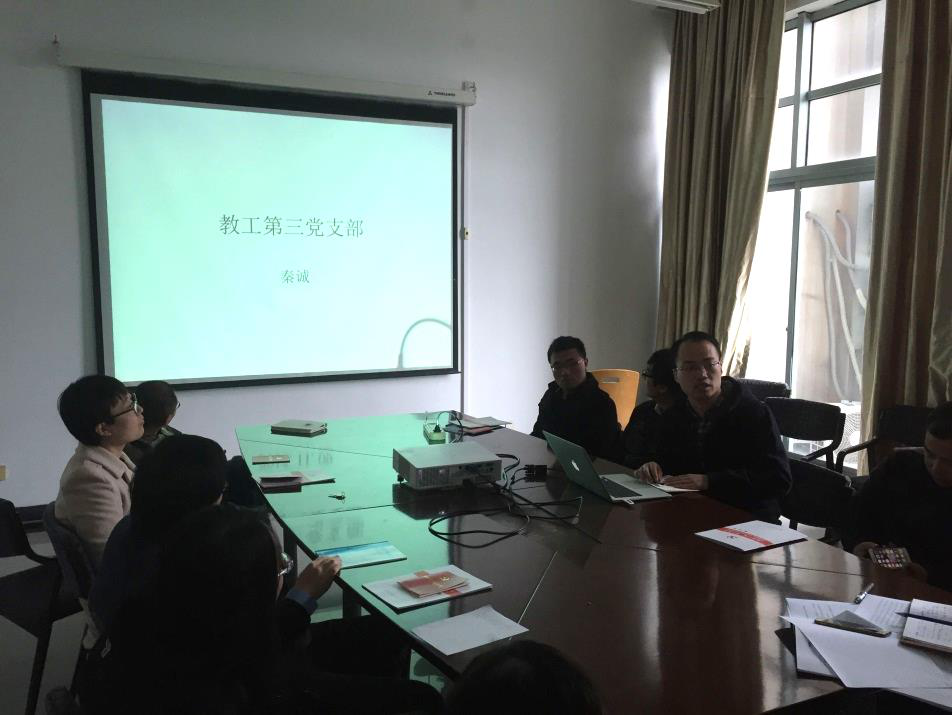 2017年11月15日,51黑料 教工第三党支部在第一实验楼406开展了党员固定活动日,学习贯彻党的十九大报告精神。会议伊始,由陈飞同志做点名工作,确认党员到会情况,党支部总共24人,实到20人,3人请假,1人出国进修。