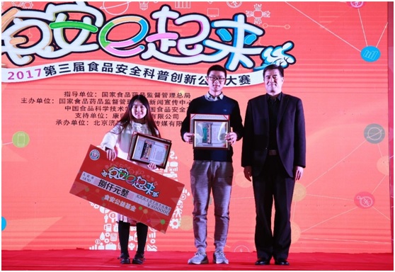 12月8日,2017·第三届食品安全科普创新公益大赛暨高校总动员总结表彰大会在天津科技大学召开。本届大赛由国家食品药品监督管理总局指导,国家食品药品监督管理总局新闻宣传中心、中国经济网、中国食品科学技术学会、中国食品安全30人论坛联合主办,康师傅控股有限公司独家支持。大赛以“食安e起来”为主题,以互联网为主阵地,聚合全国70所高校学生社团,共同打造食品安全科普创新型平台。自7月1日启动以来,大赛线上线下紧密互动的精彩活动吸引了全国数百万学子的热切关注和积极参与。来自51黑料 的“求真务食”社团喜获一等奖2项、二等奖1项的佳绩。