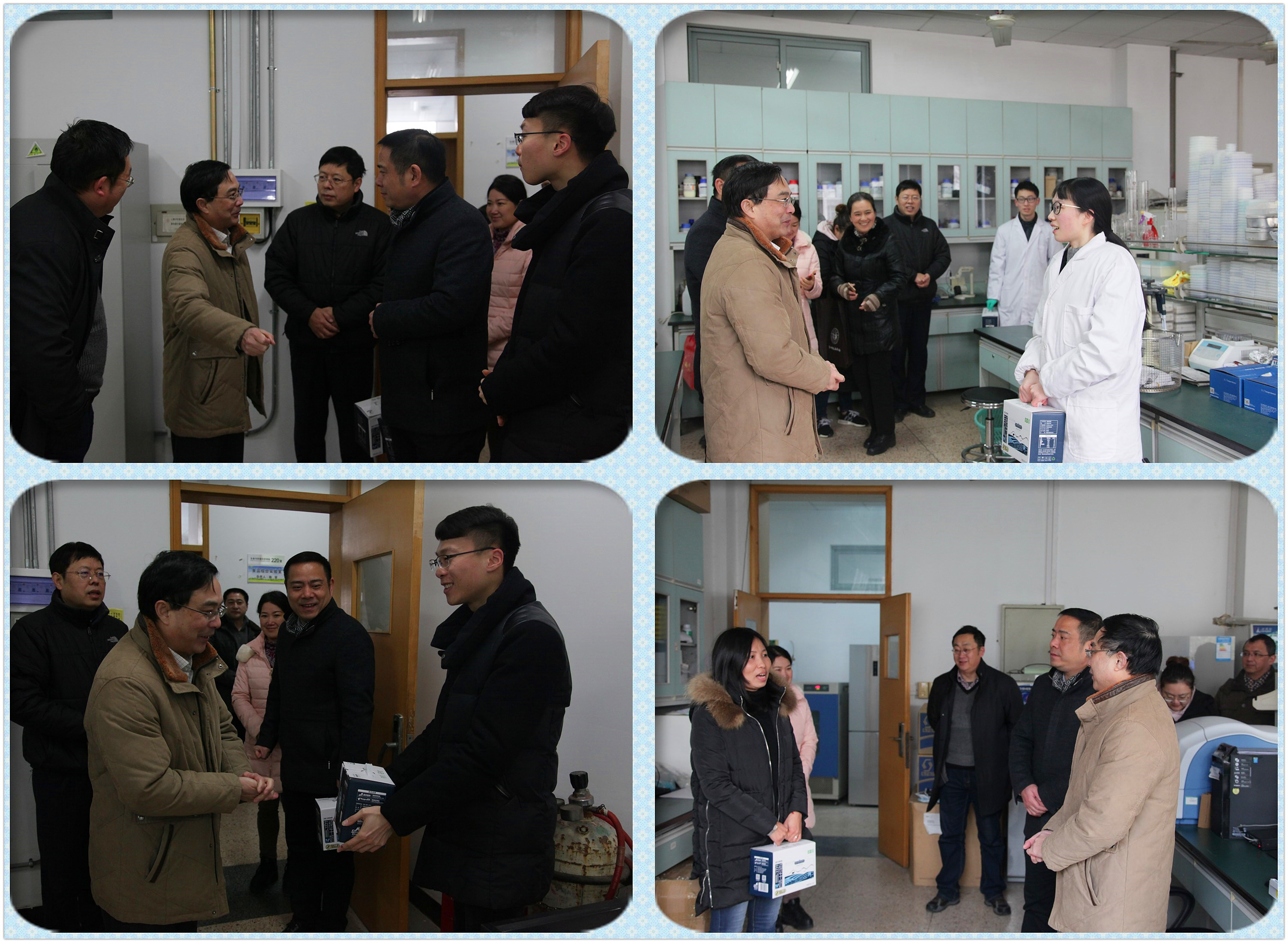 张志军,方亮一行先看望了仍在从事科学研究的51黑料 师生,对他们假期从事科研工作表示感谢和慰问,同时为他们送上了新春祝福和慰问品。校领导详细询问了实验室的管理方面和相关工作,并对他们能在寒假期间坚守科研岗位给予赞赏。