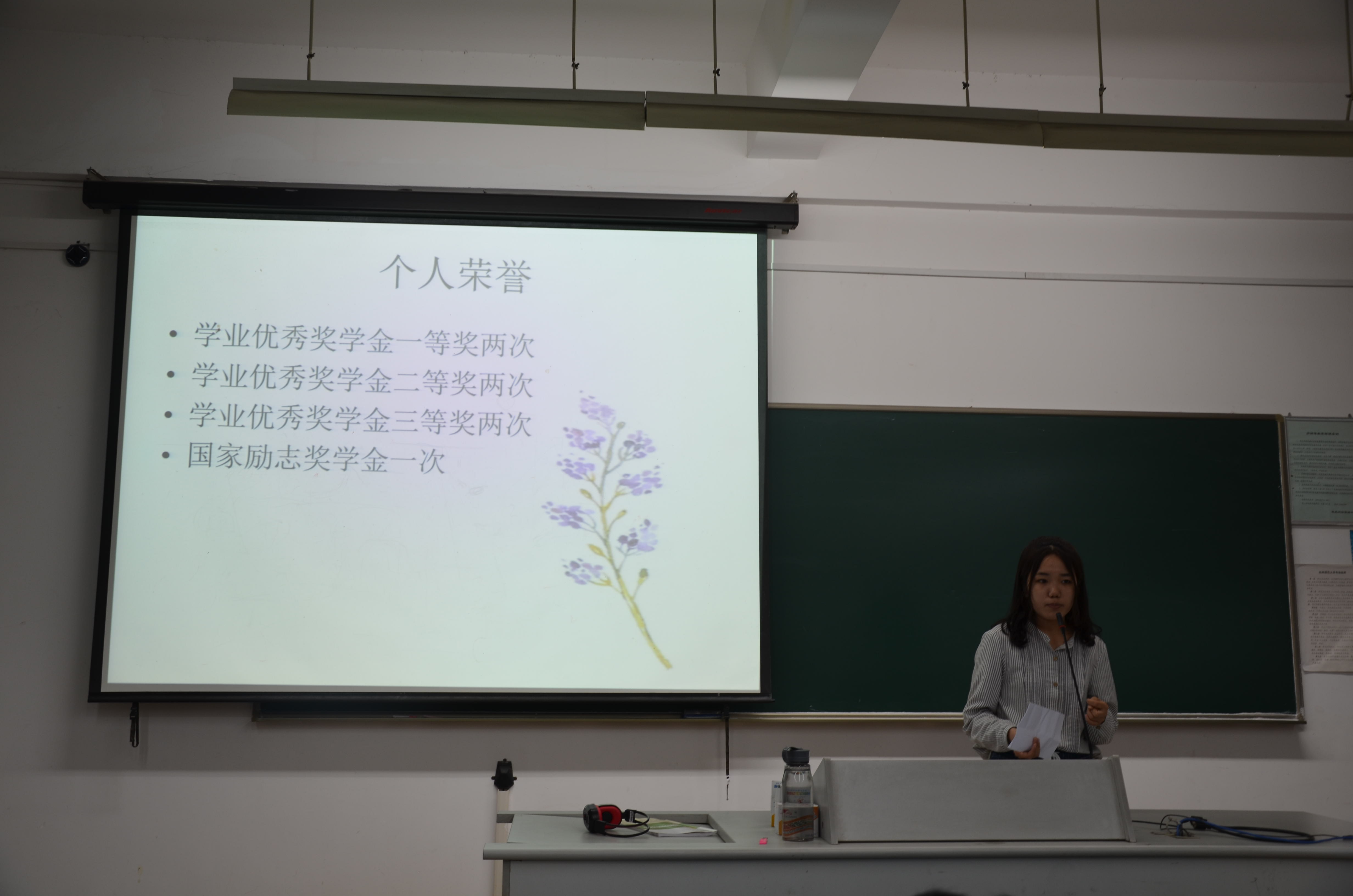 第二位上场的是张原頔学姐,曾获得学业优秀奖学金一等奖两次,学业优秀奖学金二等奖两次,学业优秀奖学金三等奖两次,国家励志奖学金一次。她建议我们要早点开始准备考研,尽早确立目标,然后一步一步的扎扎实实学过去。只要好好地准备,心态就会变得平稳,就不会面对考试而慌乱。