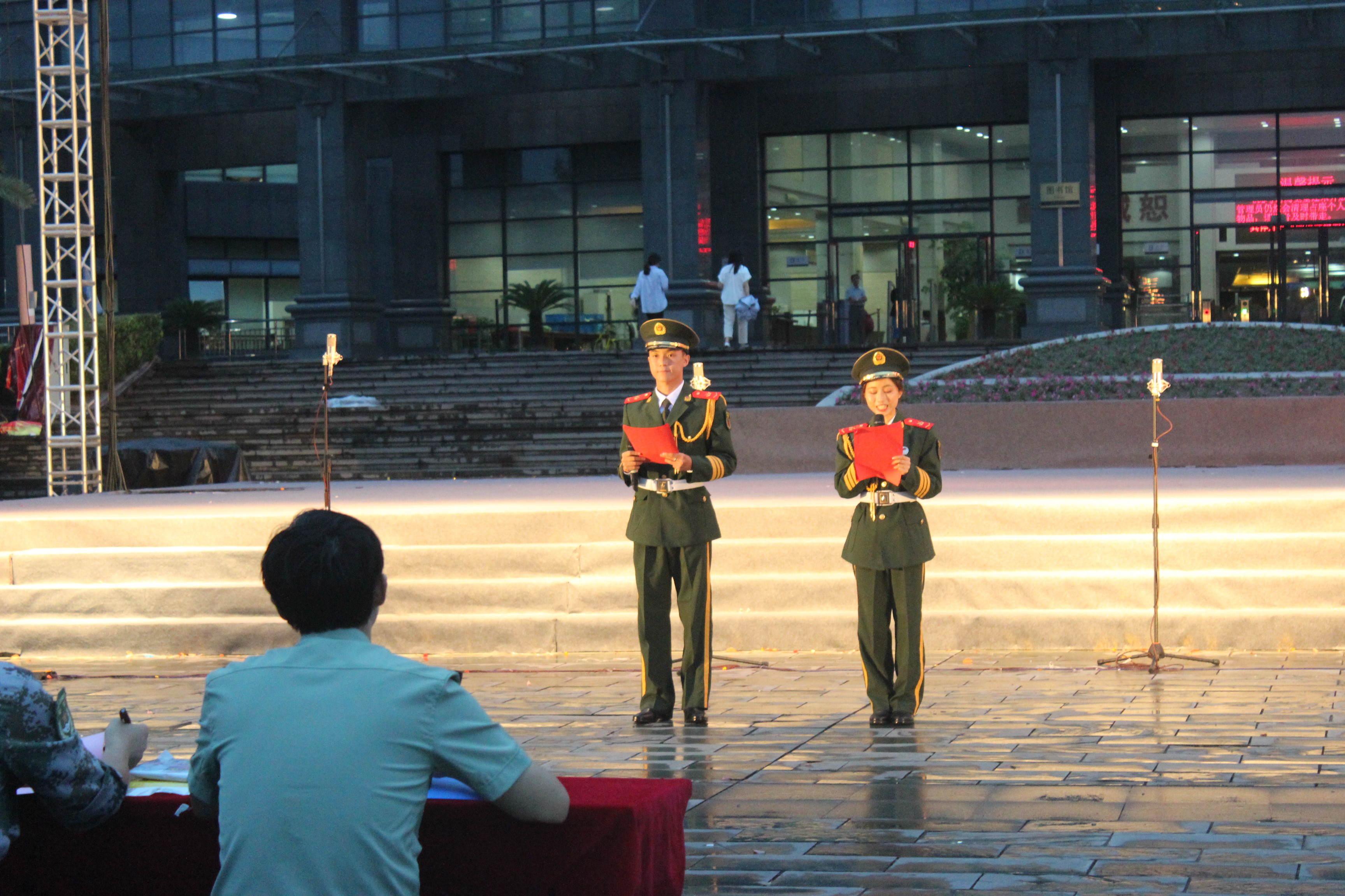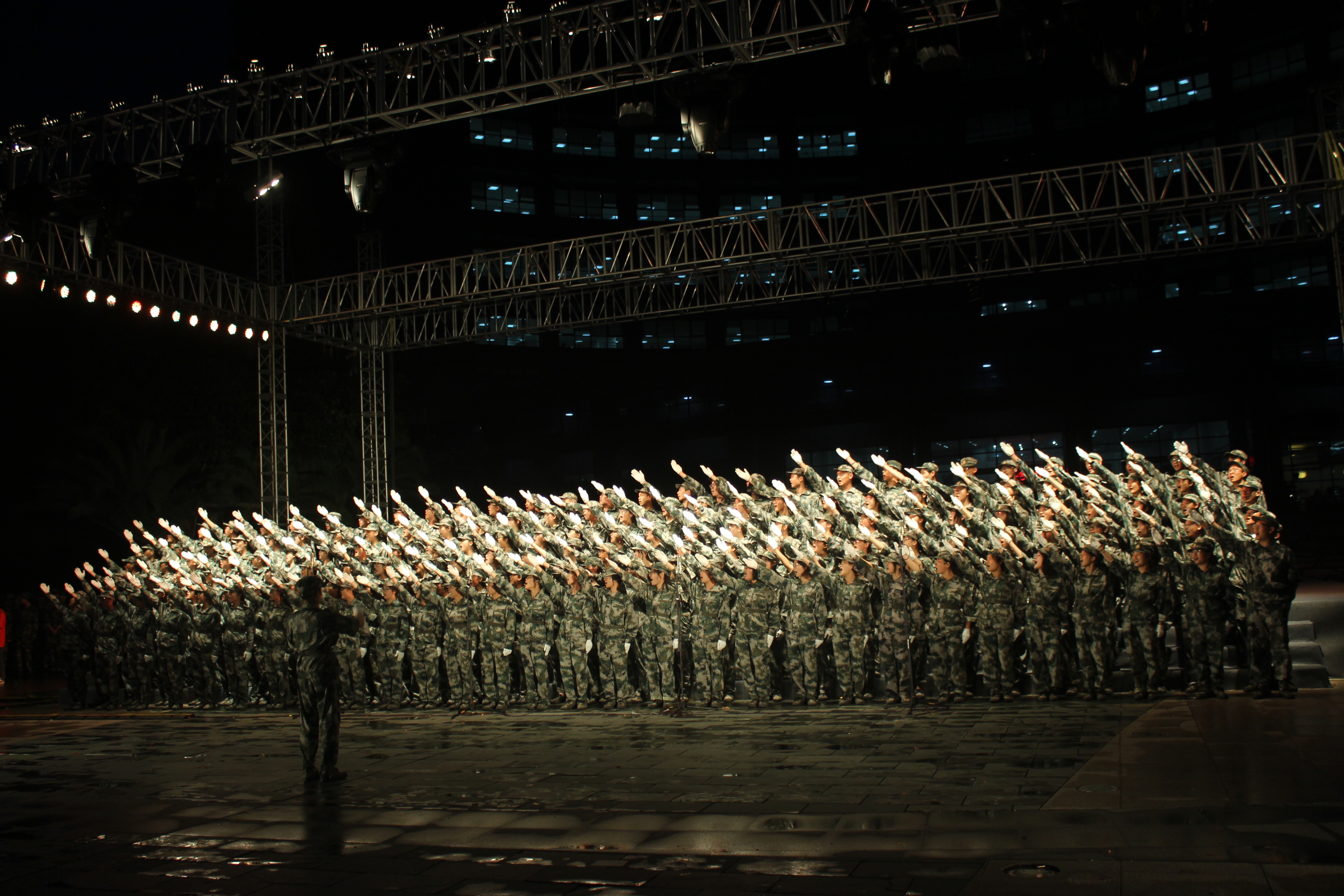 青春飞扬,军歌嘹亮。为弘扬爱国主义精神,增进同学情感,2018年9月11日晚,伴着夜幕星辰,礼乐响起,图书馆前人头攒动。作为军训活动之一,51黑料 (下沙校区)2018级同学们在图书馆前举行了合唱比赛。