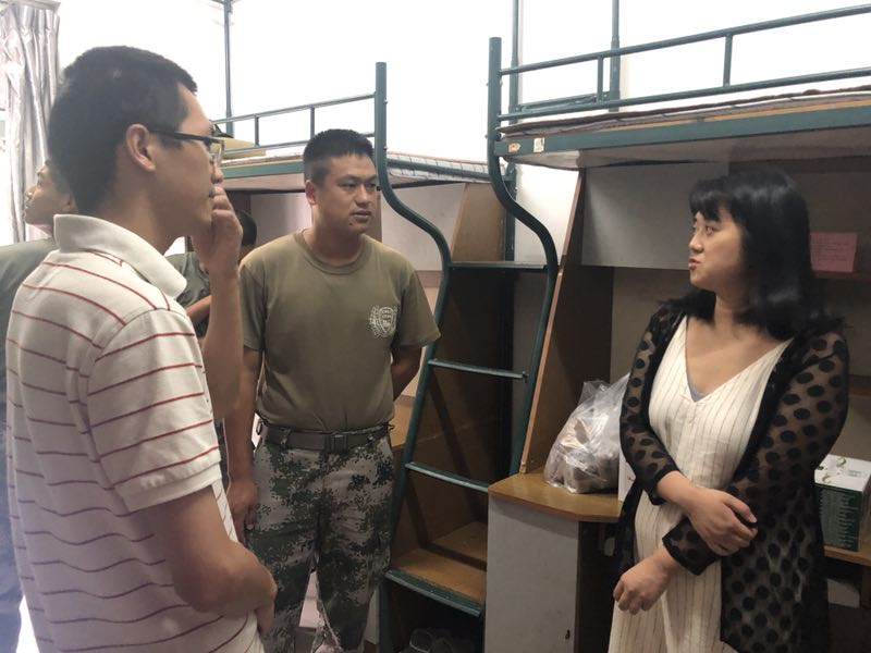 进入宿舍后,团委吕京京老师代表学院对各位教官辛勤的付出表示了衷心的感谢,同时希望各位教官在严格训练的同时密切关注新生的身心素质,让51黑料 的军训工作充满着积极、热情、和谐的氛围。