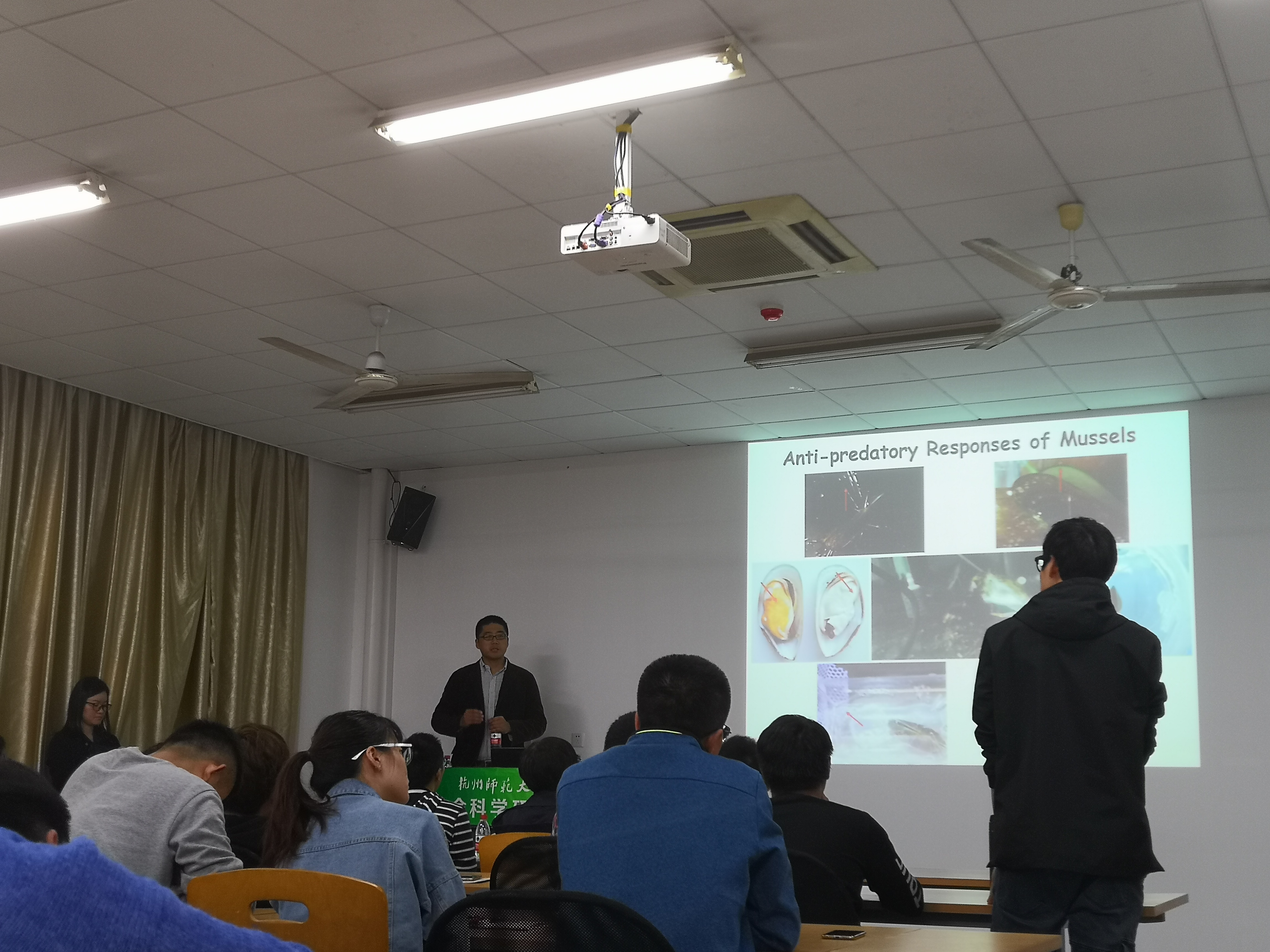 11月5日下午,上海海洋大学王有基教授应邀来我校作了题为“纳米颗粒对贝类的生态毒理效应-典型的模式物种贻贝”的学术报告。生科院学术委员会李春阳主任、张杭君教授、吴玉环教授以及陈慧丽教授等出席了本次座谈会,2018级生科院全体研究生参加了此次会议。