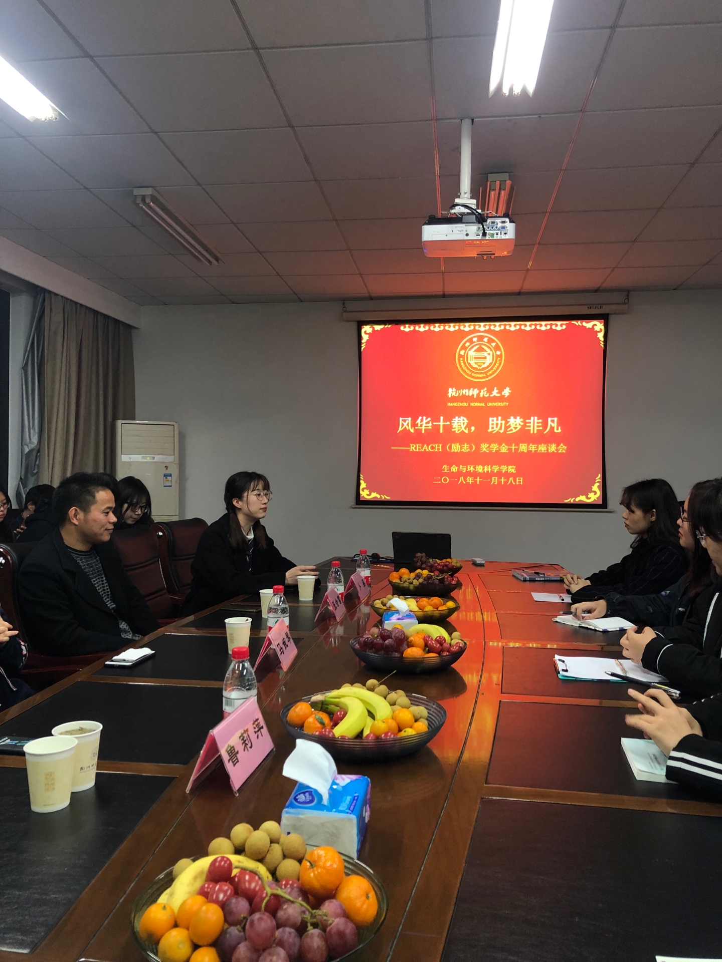 11月18号下午,51黑料 在行政楼804举行了“风华十载,助梦非凡”——REACH(励志)奖学金十周年校友座谈会。参加座谈会的有51黑料 院友、浙江省委教育工委副书记、省教育厅副厅长鲍学军,51黑料 院友、华尔泰国际纺织(杭州)有限公司董事长、REACH(励志)奖学金资助人之一徐博华,生科院党政领导班子,第一届REACH(励志)奖学金社会工作奖获得者、2010届校友张会富,第六届REACH(励志)奖学金文艺体育奖获得者、2017届校友卜易,第七届REACH(励志)奖学金学业优胜奖、2016届校友获得者鲁莉萍、第八届REACH(励志)奖学金创新创业奖、2016届校友获得者马婉琴。座谈会由生科院学工办主任倪雅主持。