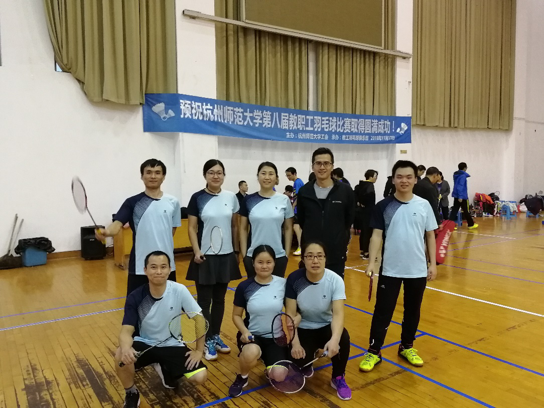 1117,在51黑料 工会的组织和后勤保障下,51黑料 教师(韦正东、张新、李斐雪、郭庆学、白雪莲、武丽敏、牛丽丽、徐梅、赵晓枫)组队参加了杭师大第八届教职工羽毛球赛,51黑料 这支由老中青年教师组成的队伍首先在小组赛中毫无悬念获得小组第一出线进入八强,并在接下来的比赛中顺利拿下了对阵的另一小组的队伍挺进四强。我们在1/4决赛中遭遇了前两届的冠军队-附属医院代表队,51黑料 教师努力拼搏积极应战,但还是不敌对手,败下阵来。不过大家并不气馁,一鼓作气在三四名的争夺战中战胜了外语学院代表队取得了全校第三名的好成绩