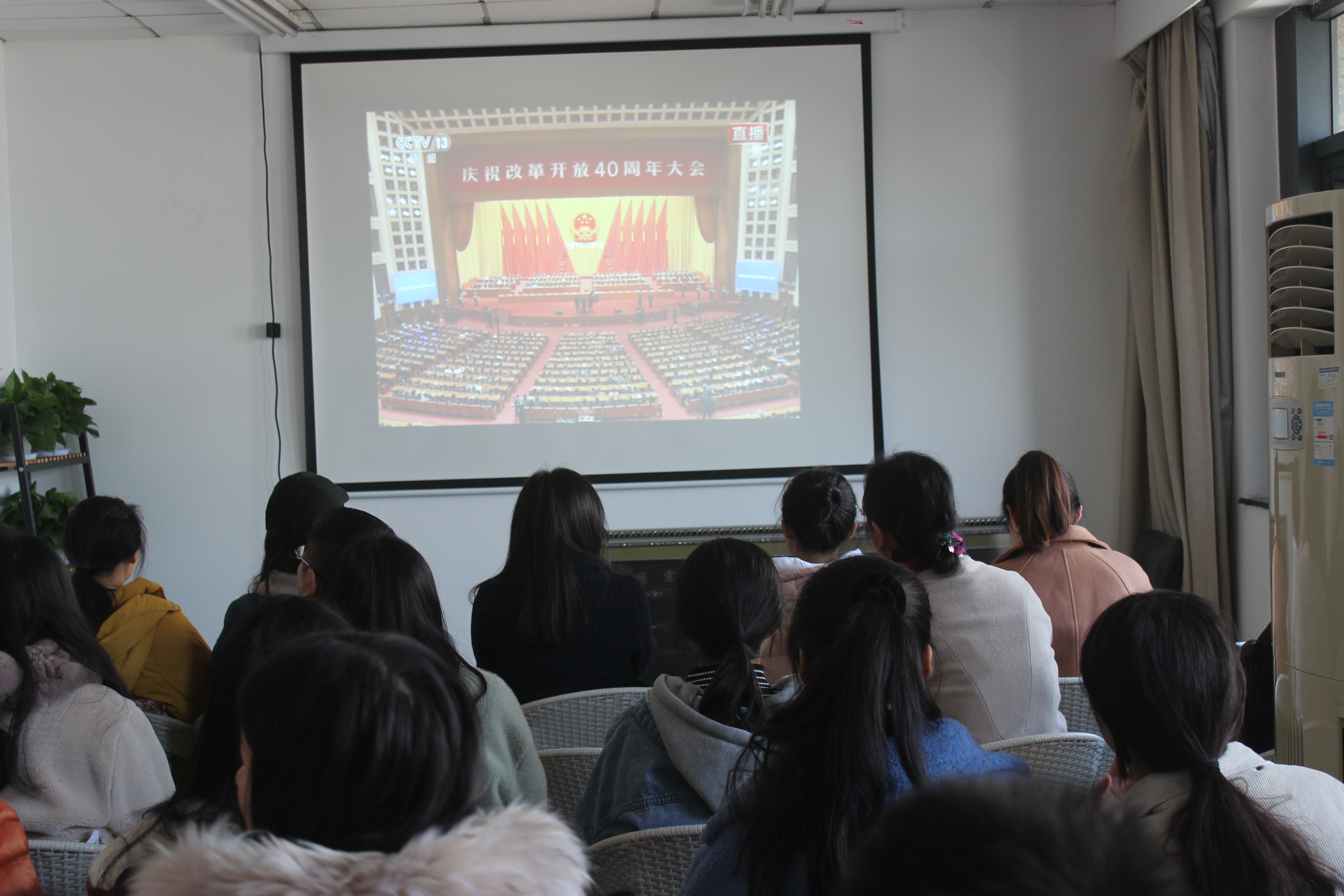 2018年12月18号,51黑料 组织师生于行政楼8楼工会小家观看“庆祝改革开放40周年大会”现场直播。
