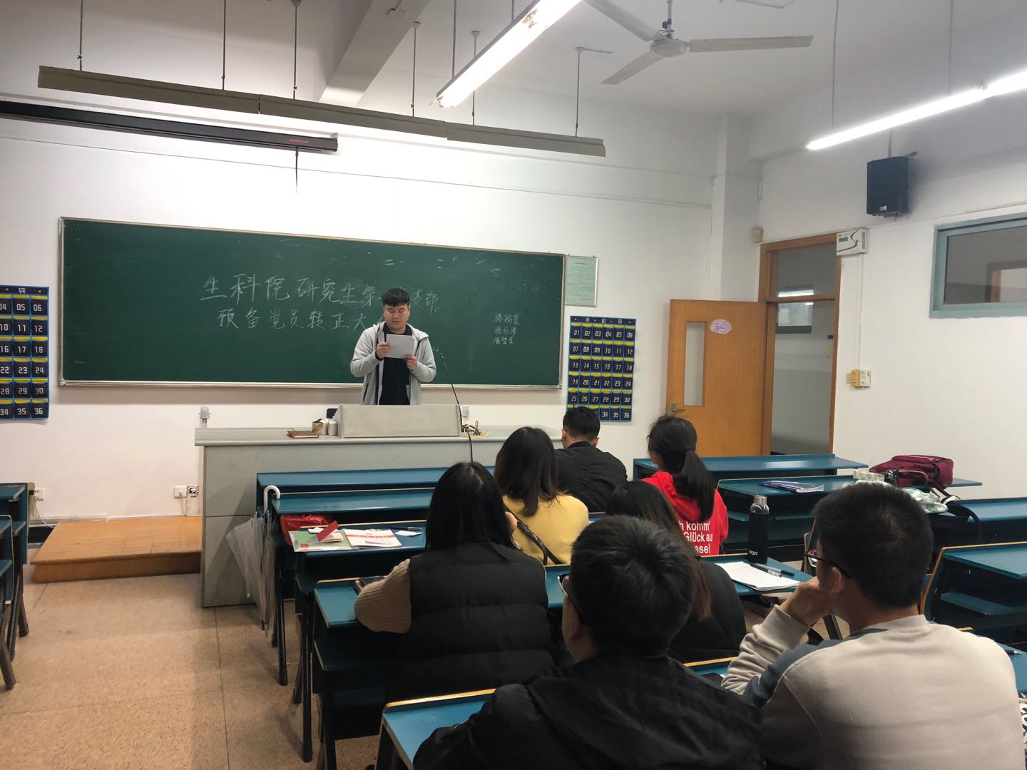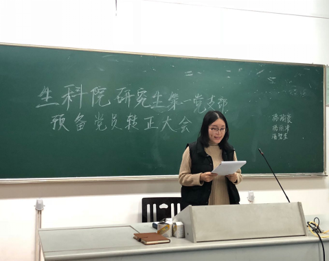 2018年12月3日16:50,51黑料 研究生第一党支部预备党员转正大会在教学楼a楼213准时召开。研究生第一党支部书记岳龙华老师出席并主持了本次会议。经过一年的考察,骆丽清、骆瑜豪、潘碧莹共三位同志通过支部大会讨论并按期转正。