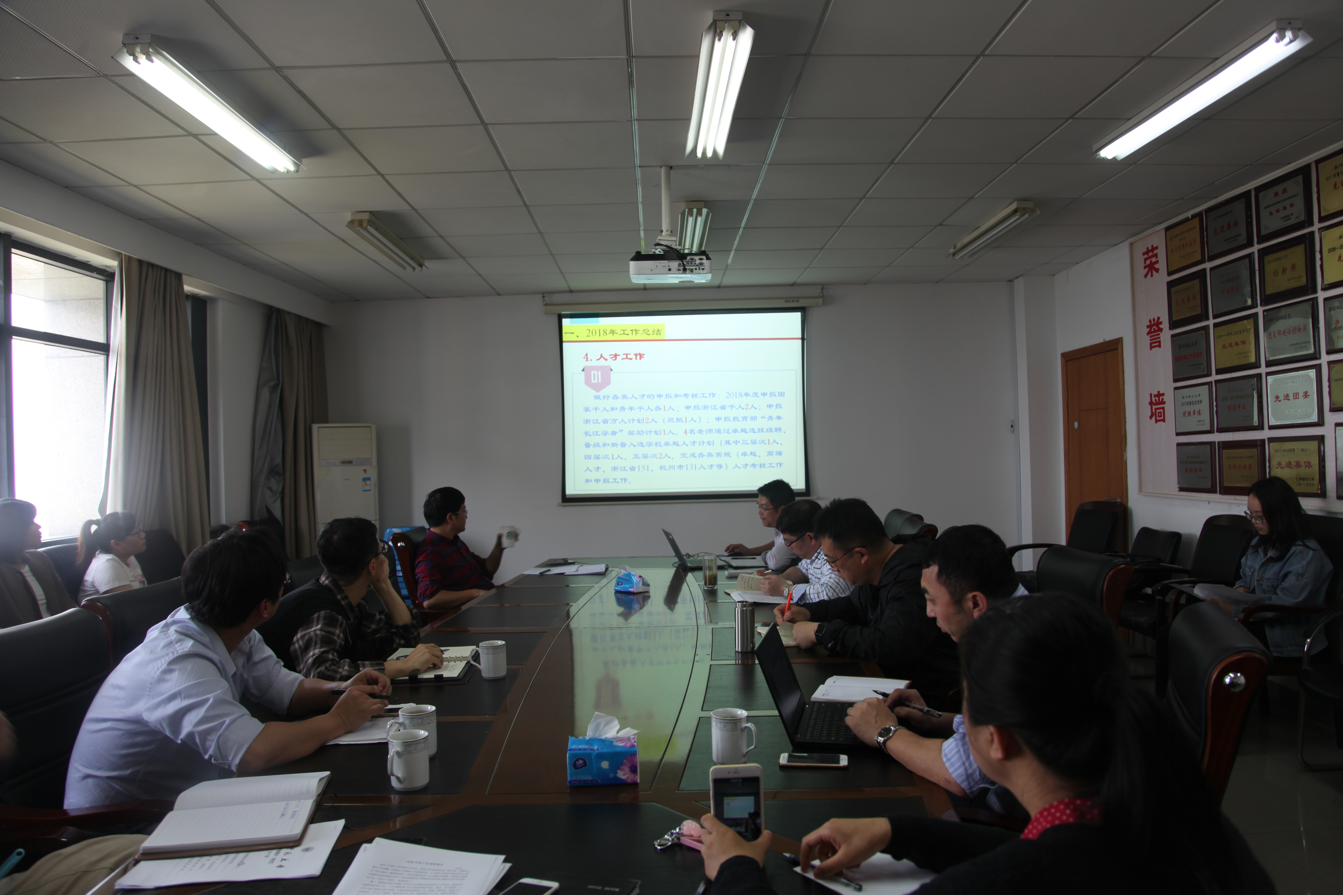 在会议中,党院办主任、教学科科长、学工办主任、团委主任、实验中心办主任以及学科科研社会服务办主任依次进行了述职,各科室准备充分,纷纷通过举实例、列数据、图文等方式,全面、客观、深入地围绕2018年度重点工作总结以及围绕十三五规划的2019年工作计划方面进行了述职汇报,其余行政秘书进行书面汇报。