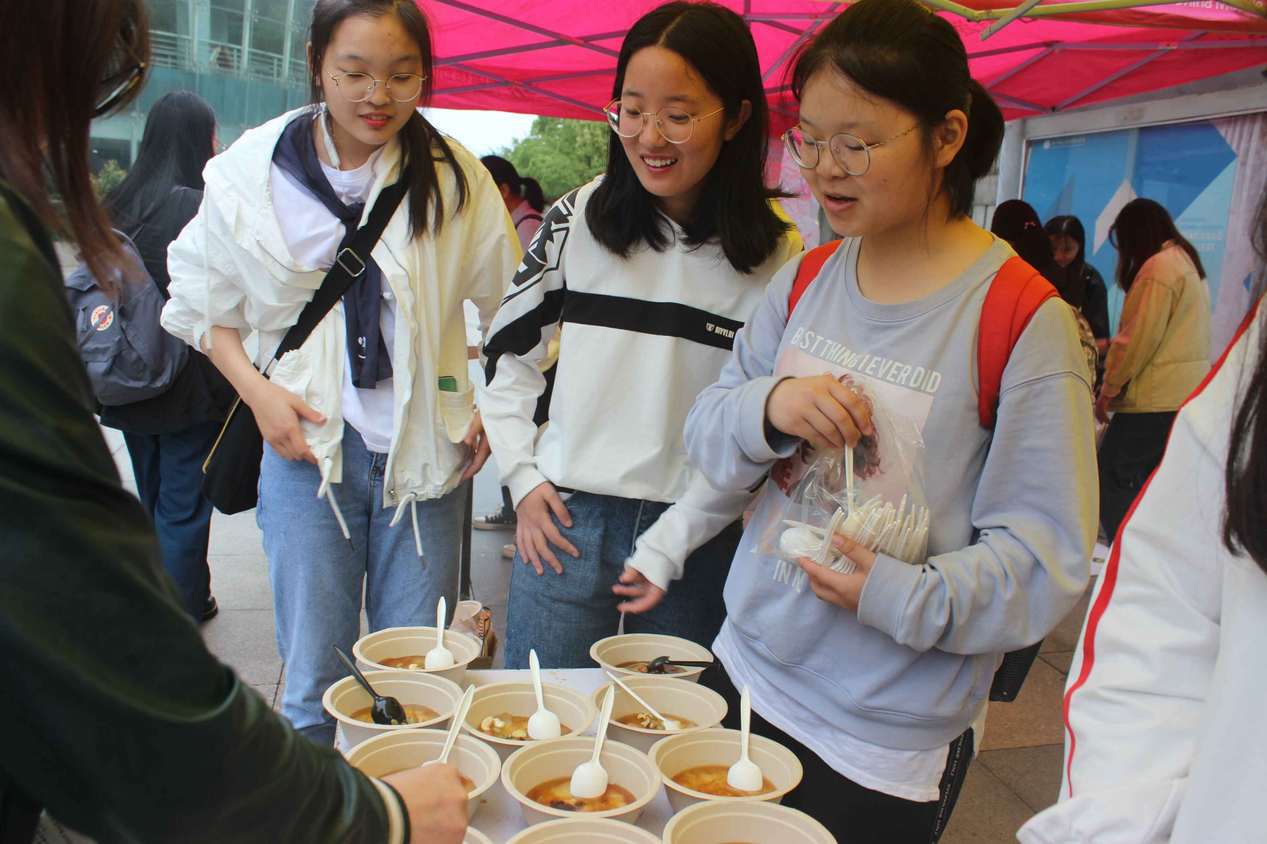 同时生科院学生会体育部、学术科技部、办公室的干事们贴心的为同学们现场制作了冰粉,且在朋友圈等社交平台上发布推广使用可降解材料的同学可尝试制作冰粉,现场所用的碗和勺子均为淀粉类可降解材料制品。
