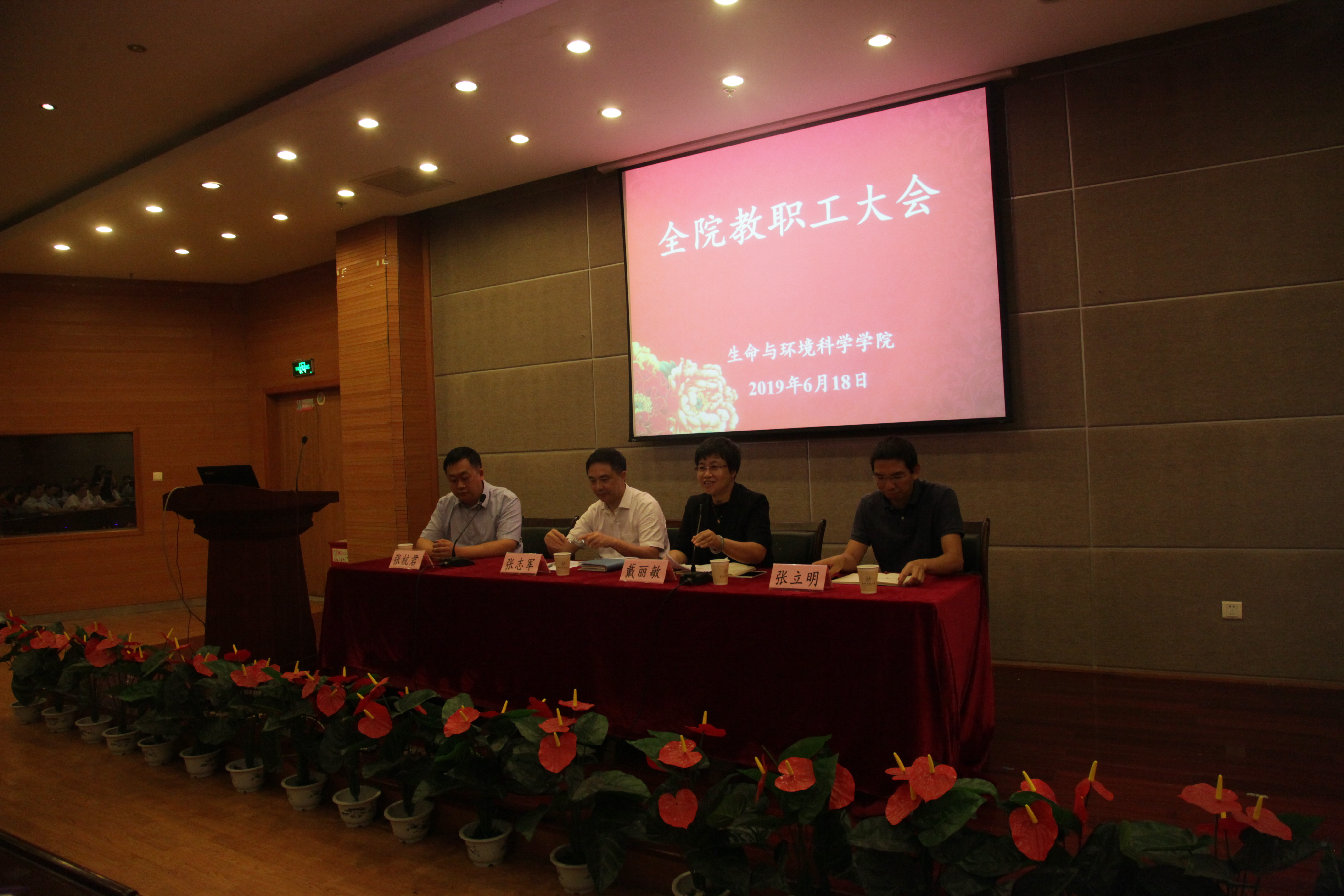 2019年6月18日下午,在下沙行政楼叙伦厅召开生科院全体教职工大会,主要是领导职务任免、部署期末和搬迁相关工作。校党委副书记张志军,校党委委员、组织部长戴丽敏出席会议。