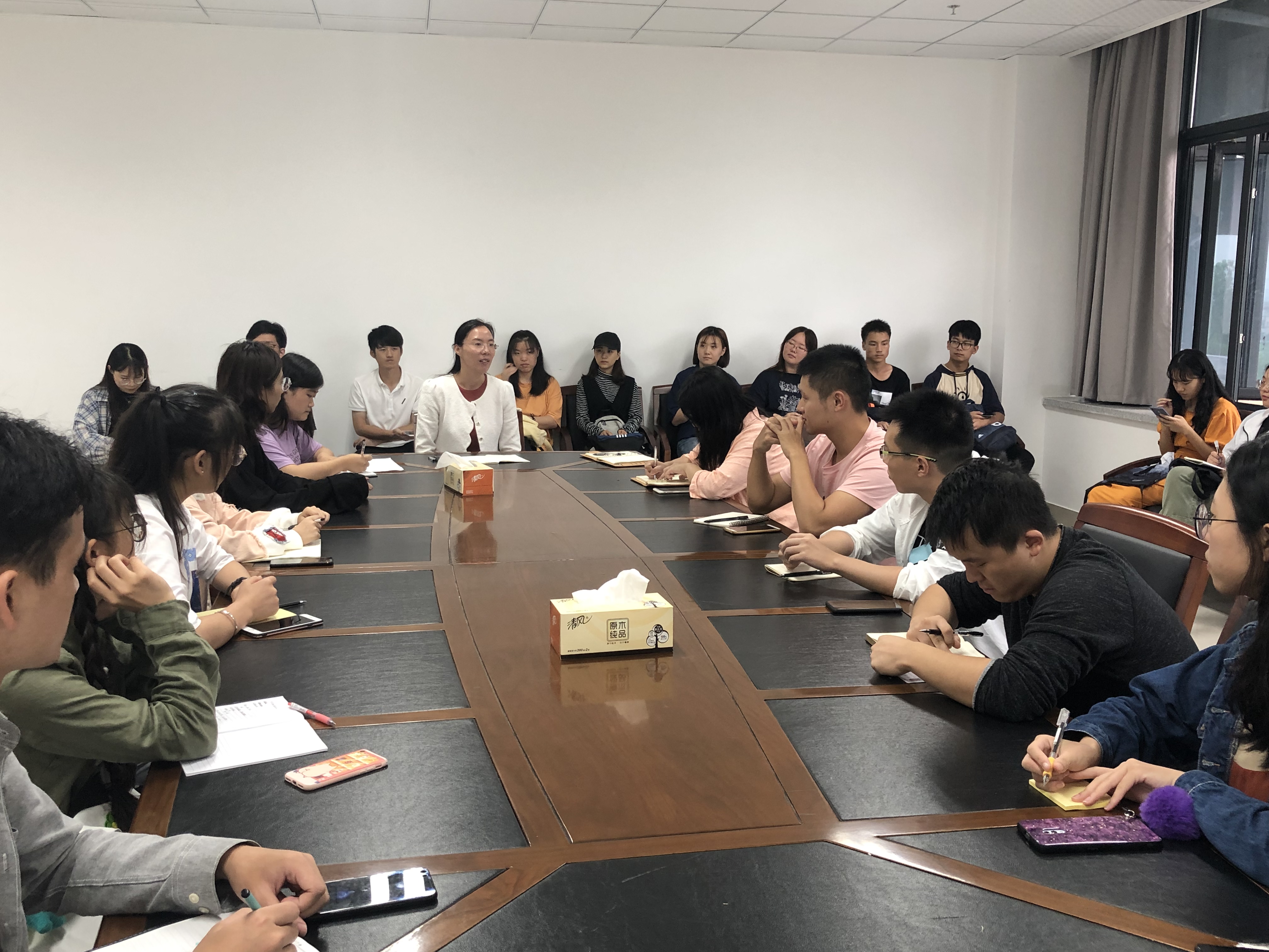 随后,吕京京老师指出对于新学期的贫困生工作,各班要成立以班长为组长,团支书为副组长,再加四名班级学生的评议小组,在9月20日之前完成贫困生认定工作。特别注意是否存在虚报情况和确实贫困但未申请认定的情况。紧接着,她叮嘱各班心理委员要随时关注班级同学心里状况,有特殊问题随时上报。最后,陈好老师布置了新学期的团日活动工作,她表示今年适逢建国七十周年和五四运动一百周年,希望各班调动团员青年,认真筹划本次团日活动,争取形式多样,体现生科特色。