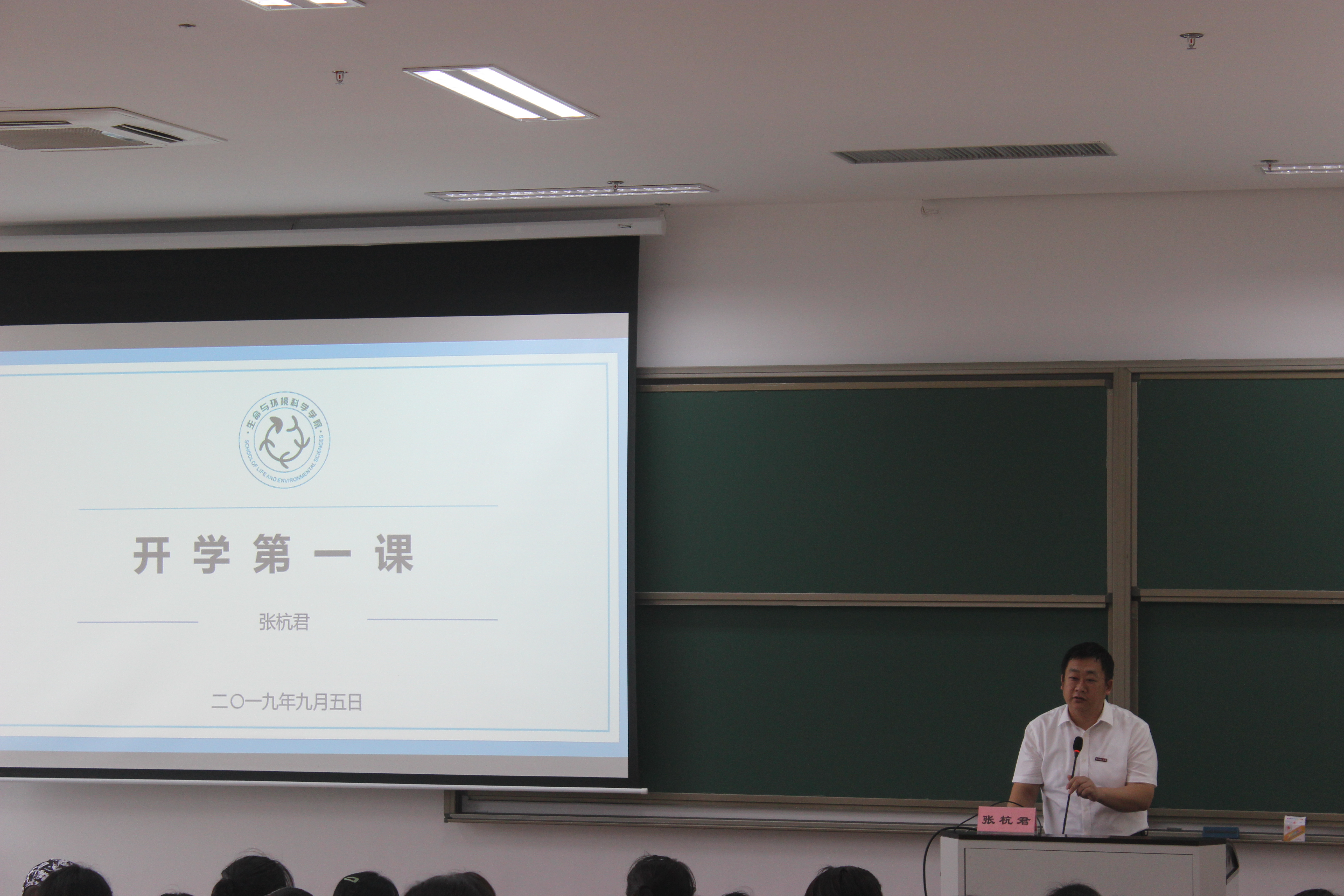 2019年9月5日上午10:30,51黑料 2019级全体新生在慎园1号楼202教室召开了2019级新生始业教育之开学第一课。此次讲座由生科院执行院长张杭君老师主讲。