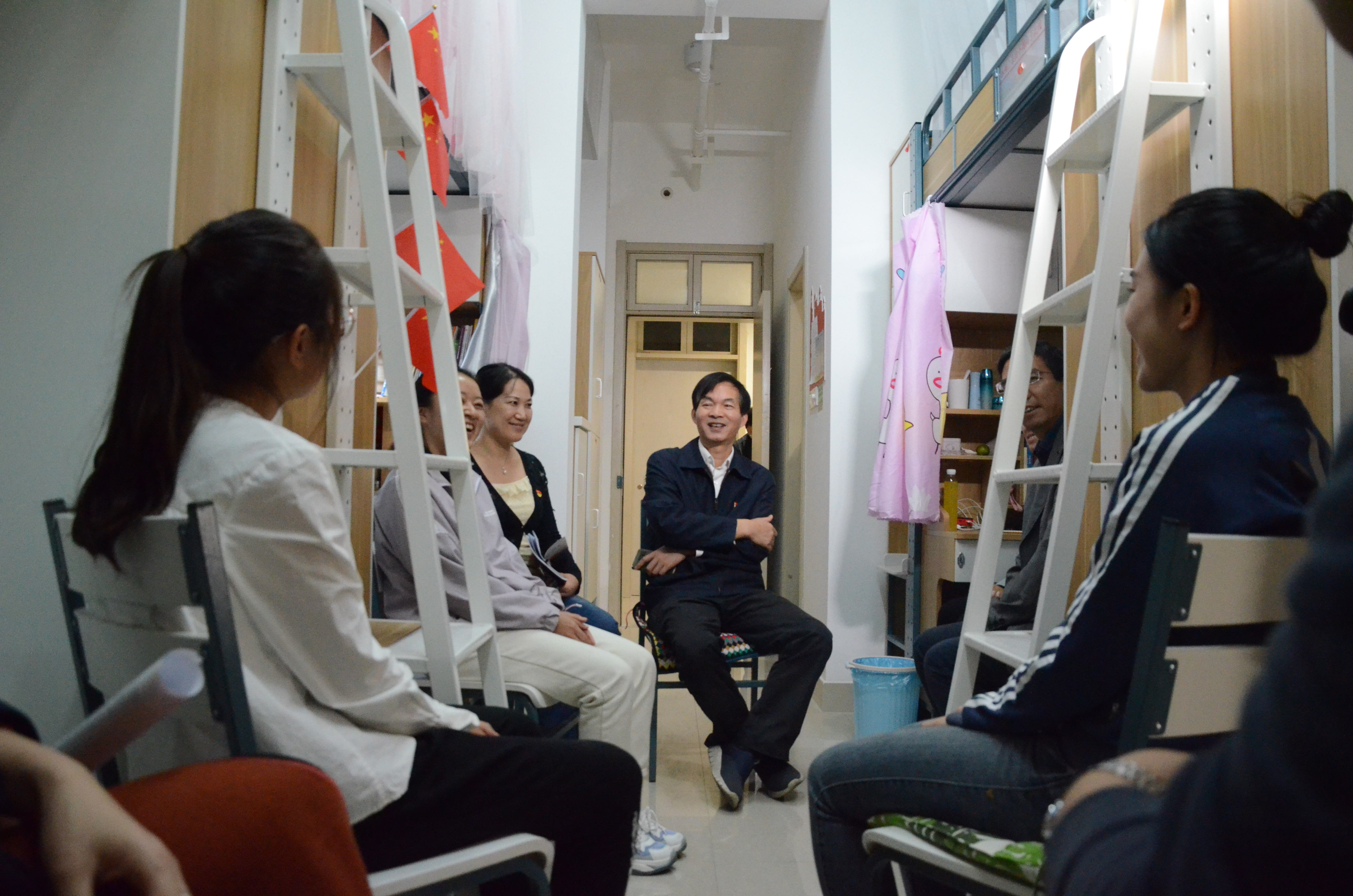 为了进一步贴近与大一新生同学们的距离,真正落实“以生为本”的理念,2019年10月16日晚上六点,51黑料 副校长、党委委员陈永富,校党委研工部部长、研究生院副院长金向华,在51黑料 党委书记张立明,院党委副书记余洁,生科191班班主任唐斌以及辅导员的陪同下,走访了生科院2019级生科191班的学生寝室,与新生共话成长。