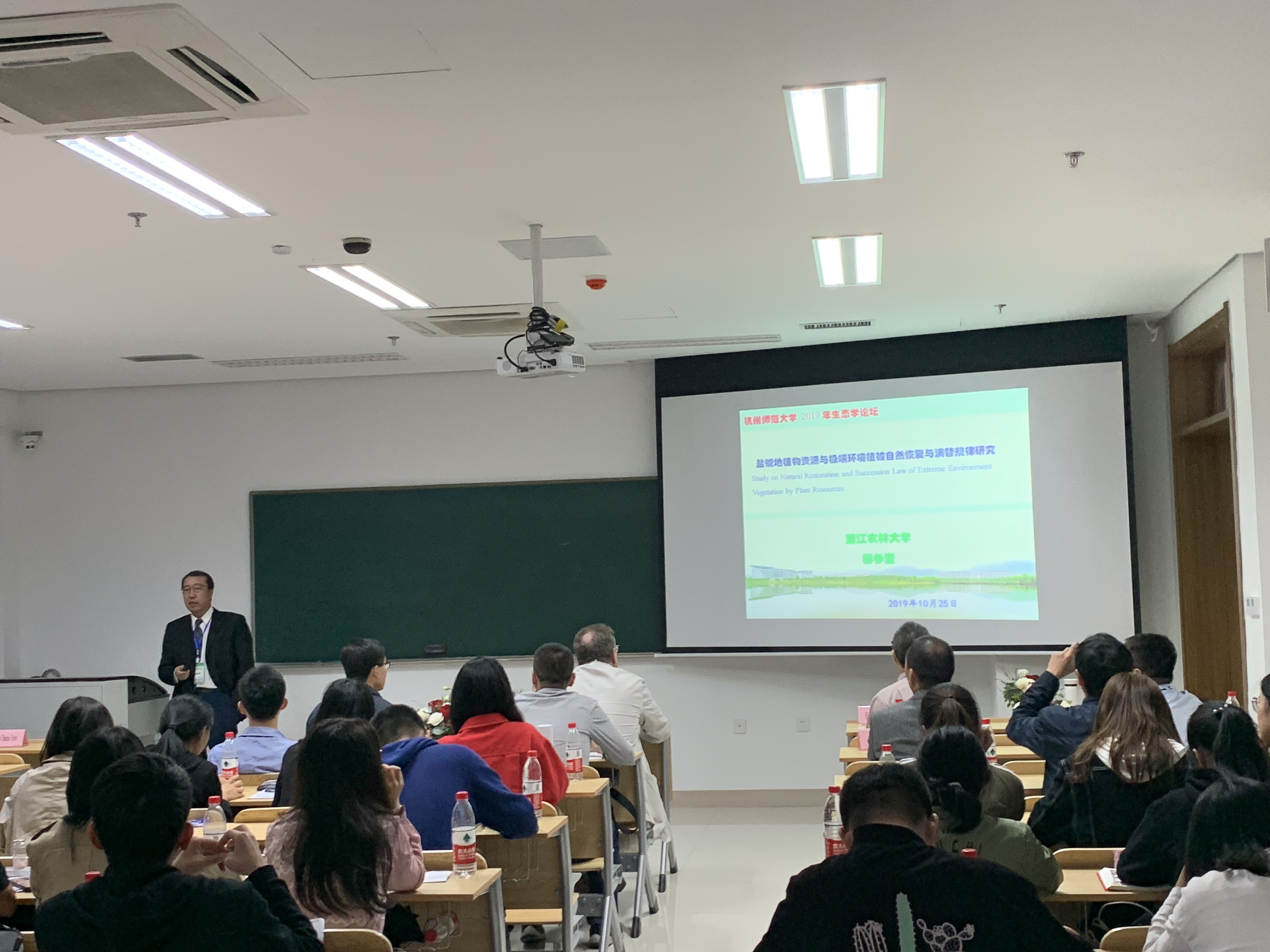 24日下午,进行了生物学和生态学卓越论坛专家专场,分论坛由邱猛生教授和李春阳教授主持。生物学专家论坛由来自北京基因组研究所所长薛勇彪教授、上海交通大学生命科学技术学院张大兵教授、南佛罗里达大学医学院白文龙教授、中科院遗传发育所许执恒教授、军事科学院军事医学研究院生命组学研究所杨晓研究员5位专家进行汇报。生态学专家论坛由来自浙江师范大学化学与生命科学学院Melvin Thomas Tyree 教授、浙江农林大学的Scott Chang教授、Heikki Juho Pellervo Hänninen 教授和柳参奎教授、以及来自日本森林综合研究所植物生态研究领域物质生产研究室主任韩庆民教授5位专家进行汇报。10位专家从多视角,为广大师生奉献了关于“生命科学前沿和未来”若干问题精彩演讲,是一场学术思想碰撞的盛宴。