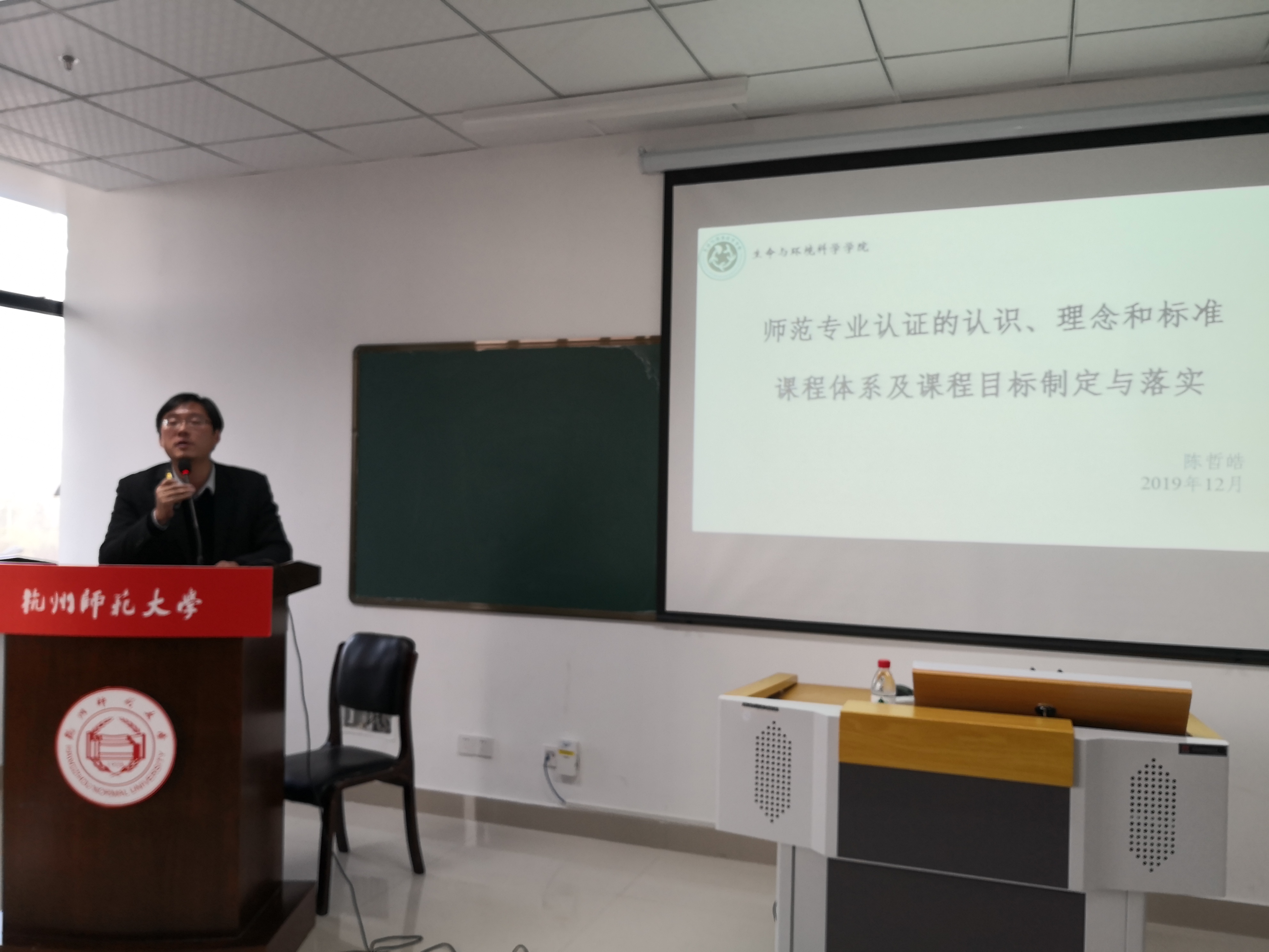 陈哲皓老师围绕师范专业认证的三大核心理念,即“以学生为中心,以产出为导向(OBE),持续改进质量”,深入浅出地阐述了认证工作理念和意义,并重点讲述了培养方案的核心要素——培养目标、毕业要求、课程体系之间的传递支撑关系。对学院生物科学师范专业认证工作的安排,诸如如何优化培养方案、如何修订教学大纲、如何达成和分析课程教学目标进行了一一详细解读。