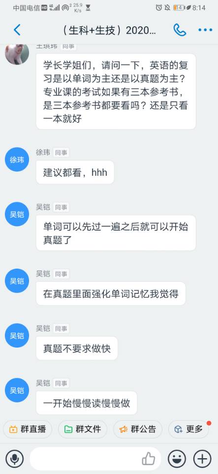 2020年6月9日六点半,51黑料 以钉钉直播的形式顺利举办了2020届考研学子经验分享会,此次交流会邀请到了今年考研顺利“上岸”的生科、生技专业的学长、学姐。