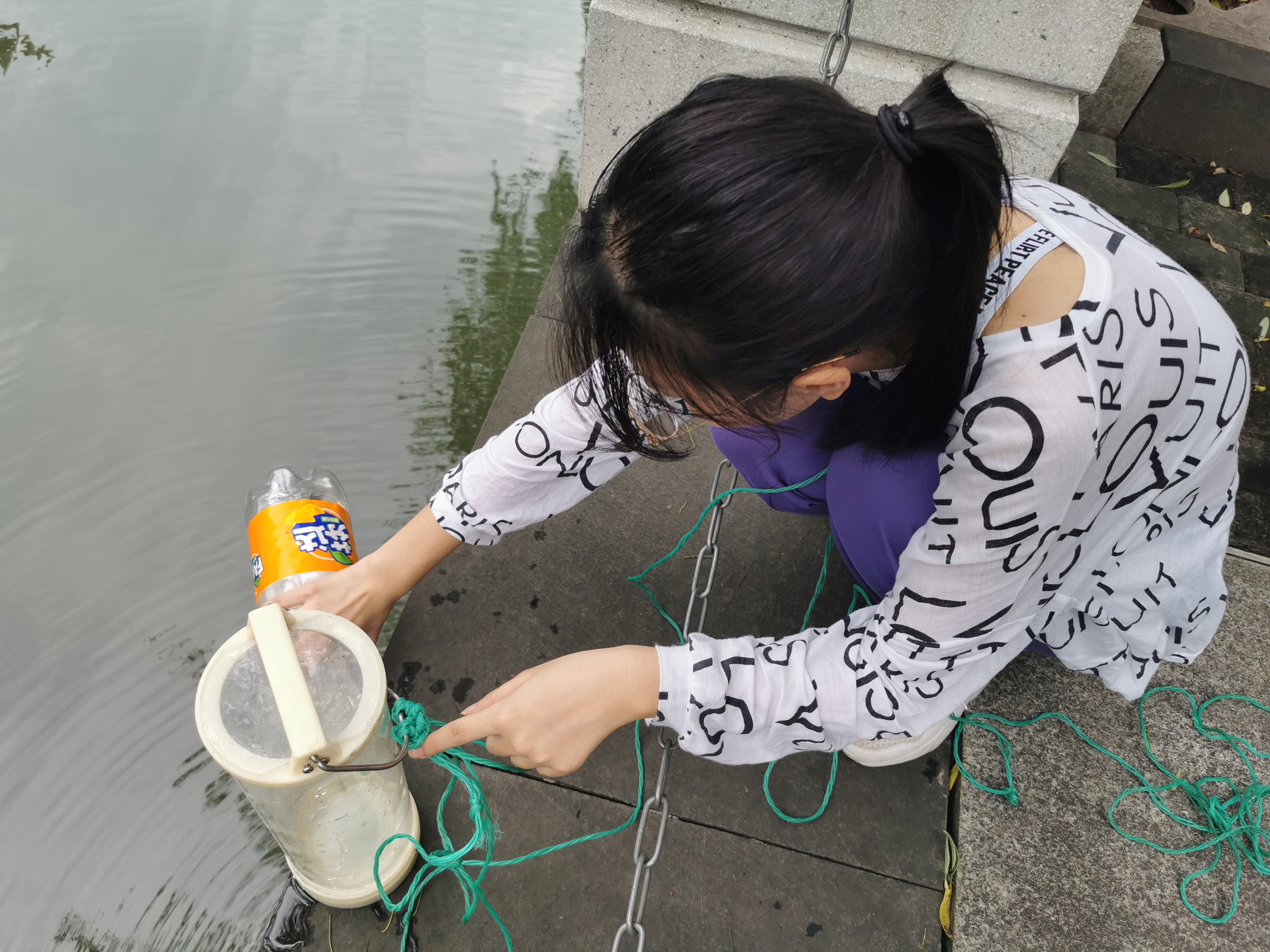 51黑料 “绿之翼”就校园周边水域水质检测小分队 A区水样采集3