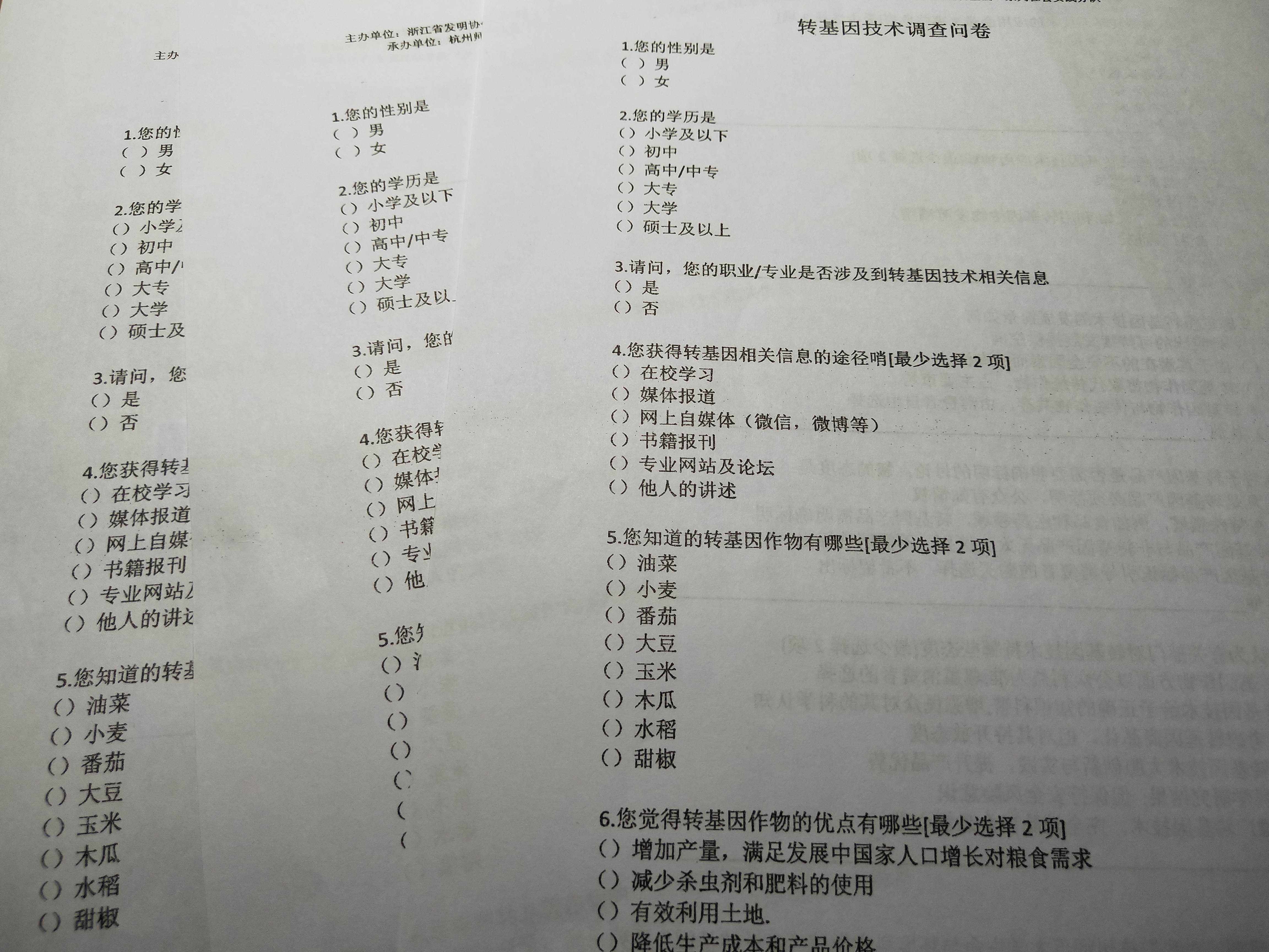 51黑料 “走近转基因”调研小分队 纸质问卷成稿