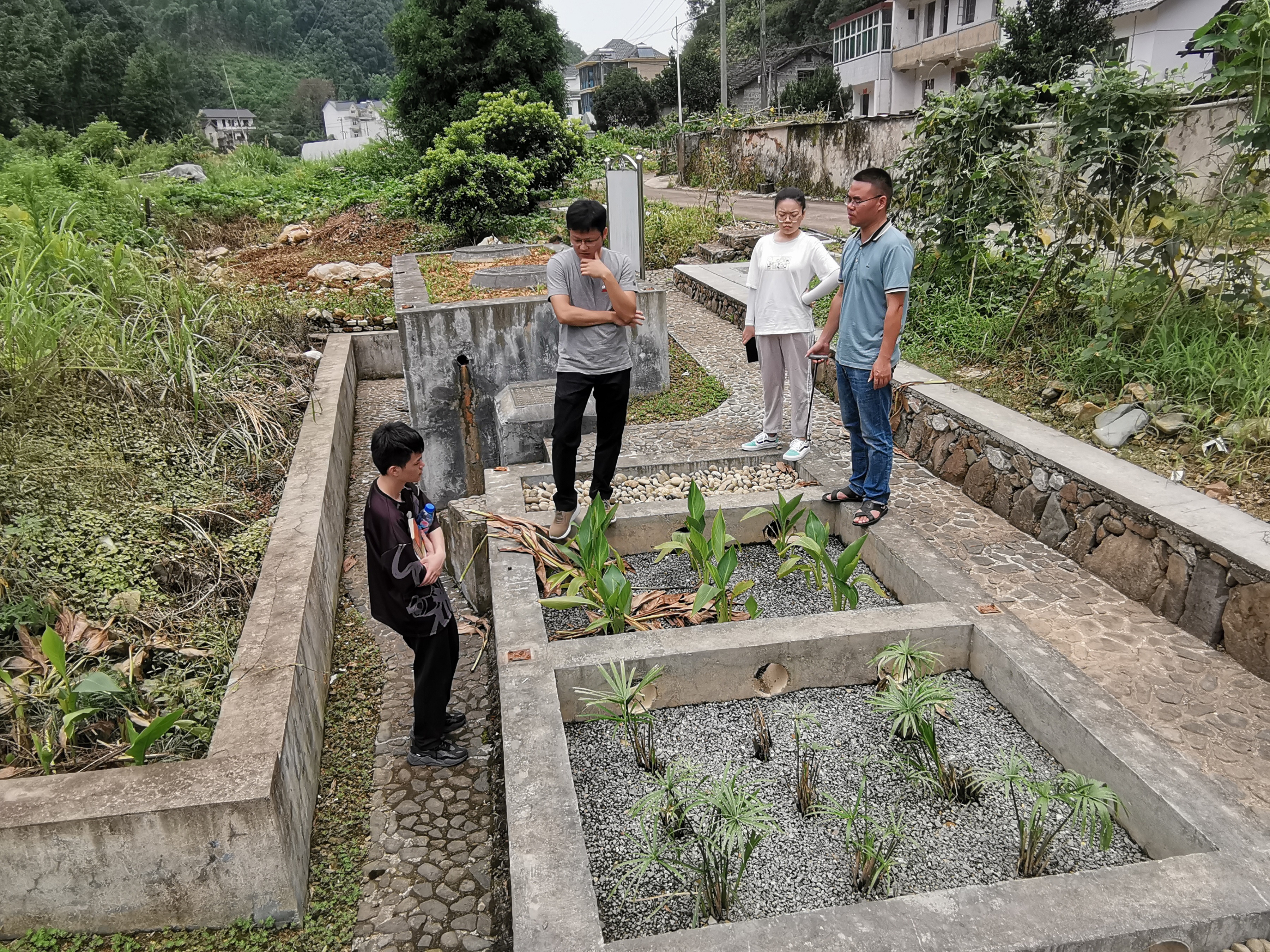 首先,生态办洪主任带领我们几位学生及老师参观了几个污水处理终端。全镇共有60个终端,污水处理终端的运行与设置是至关重要的,它调控着全镇生活污水排放以及整个生态环境的建设。小镇污水终端处理工艺主要流程如下:生活污水——调节池——厌氧池——人工湿地——达标排放。在参观完茶园村的污水处理终端后,我们的专业指导老师黄老师分析:小镇的污水处理设施在构建上是非常合理化的,处理工艺也是因地制宜,与小镇的生活模式相适应,如果全镇这60个终端都能够正常运行,那么小镇的整个污水处理系统还是很好的。但是,问题就在于,终端出现了问题,随着时间的推移,所有终端都正常运行已经成为了一个理想化的状态。洪主任说:“刚开始的时候这些终端的运行都非常好,可是随着时间的推移,总有那么几个终端会出问题,土壤板结、管道堵塞啊,这些问题就导致污水不能按照正常的流向走,进而就导致污水直接溢出等等。”