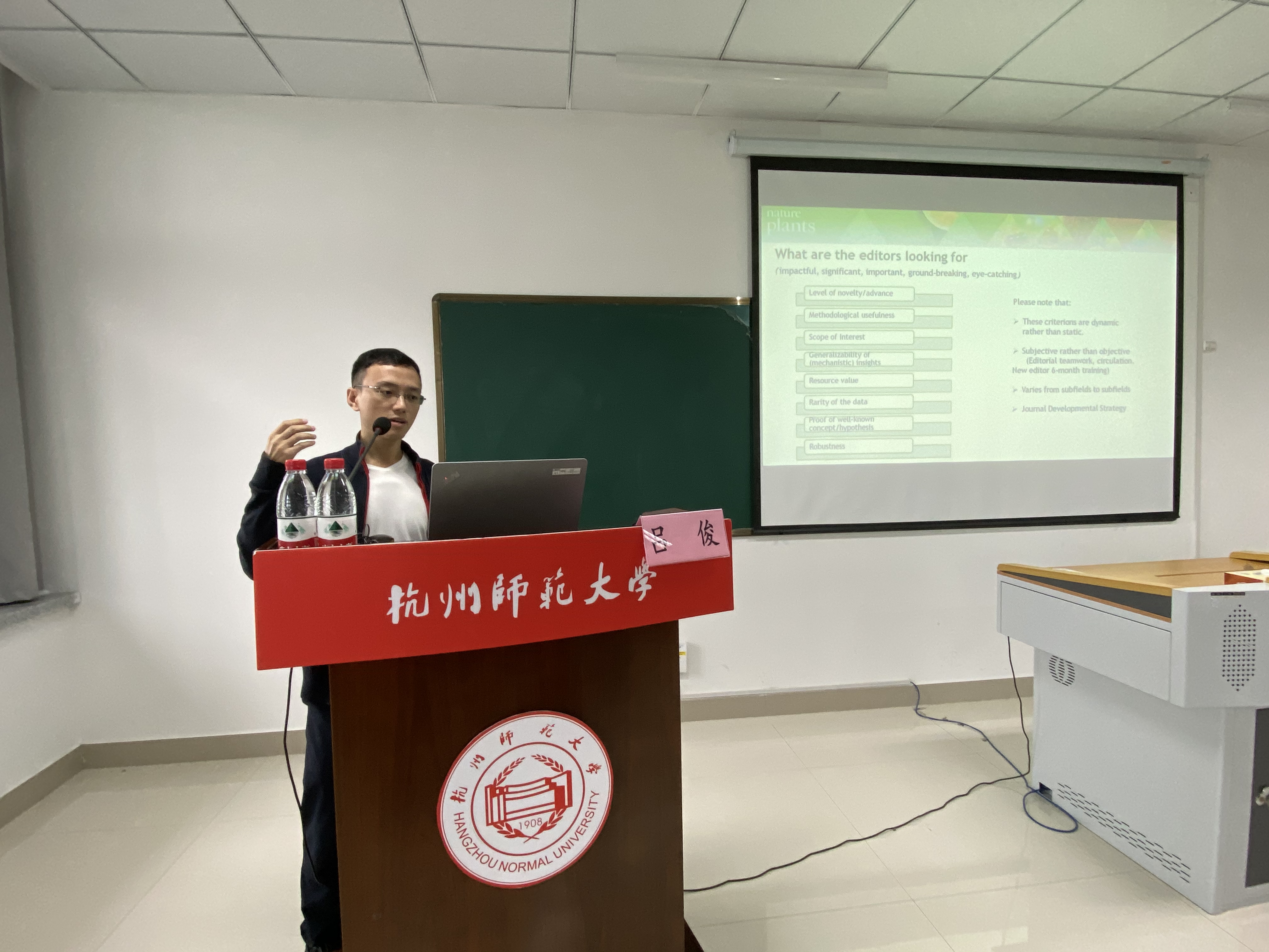 吕俊现为《Nature Plants》的资深编辑,是《Nature Plants》的创刊编辑之一。长期以来负责植物科学核心领域研究论文的内容评审,以及综述、评论文章的选题策划及约稿。吕俊博士作了题为《How to Publish with Nature Research?》的学术报告。报告中他对《Nature Plants》期刊进行了介绍,并以期刊编辑的审稿角度,从论文的选题、数据实验分析、写作和投稿等方面详细讲述了如何在自然研究中发表论文。