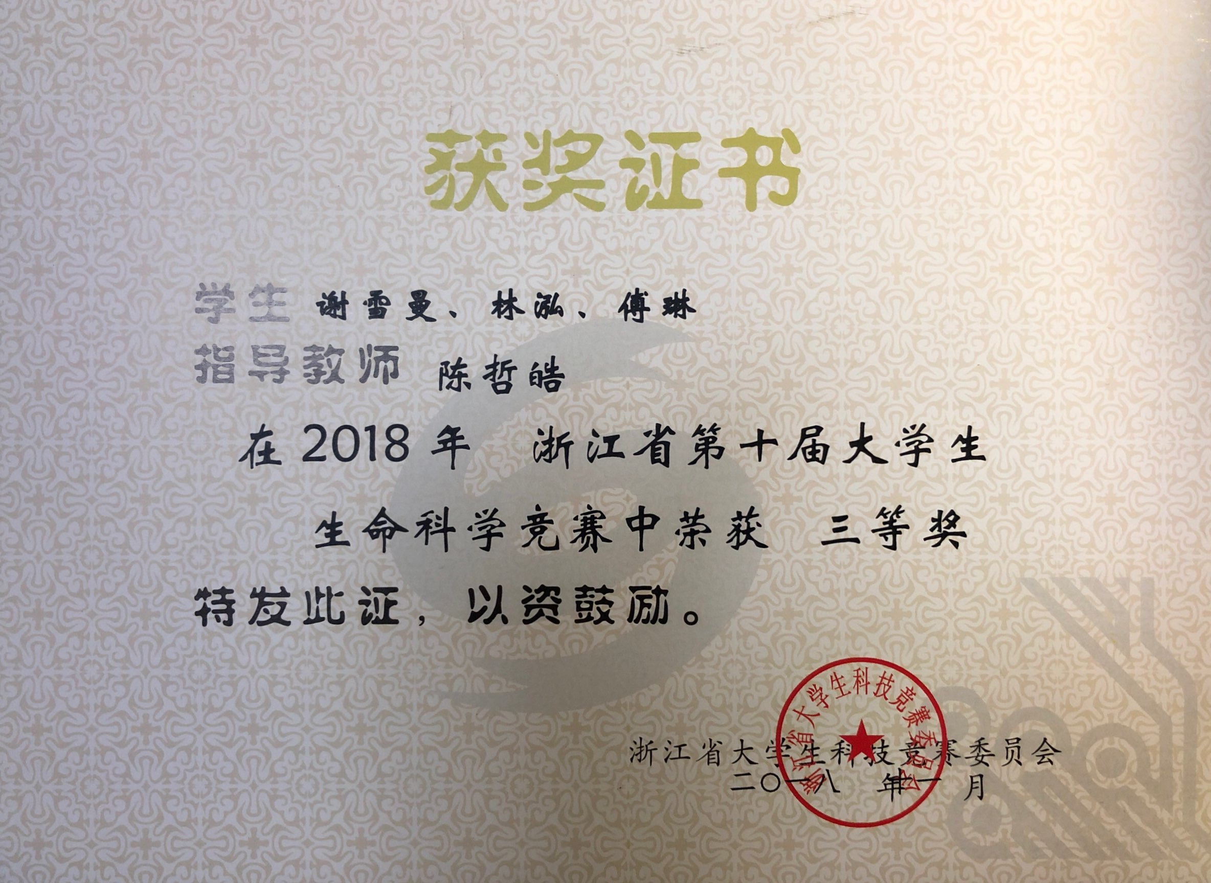 指导学生参加学科竞赛的获奖证书