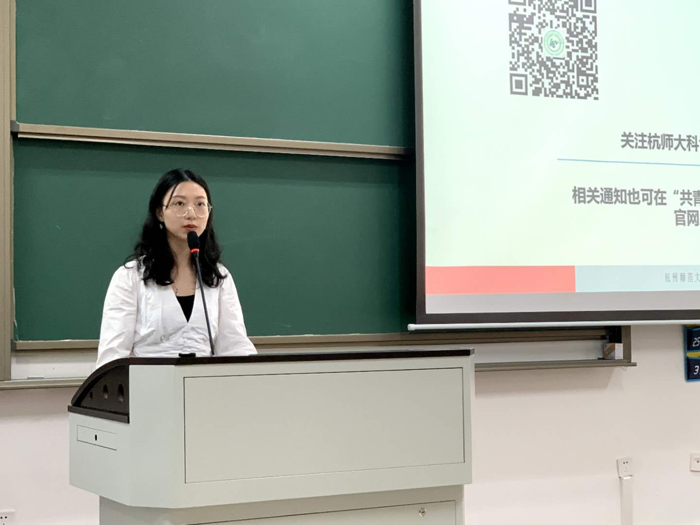 首先,来自校学生科技协会的代表向同学们简要介绍了星光计划、新苗人才计划、“挑战杯”竞赛、“本创”与“国创”这几个科创项目的举办时间、基本流程和参加意义,鼓励同学们积极主动地参加科研,科研并非是一件假大空的事情,而是与生活紧密联系起来的。