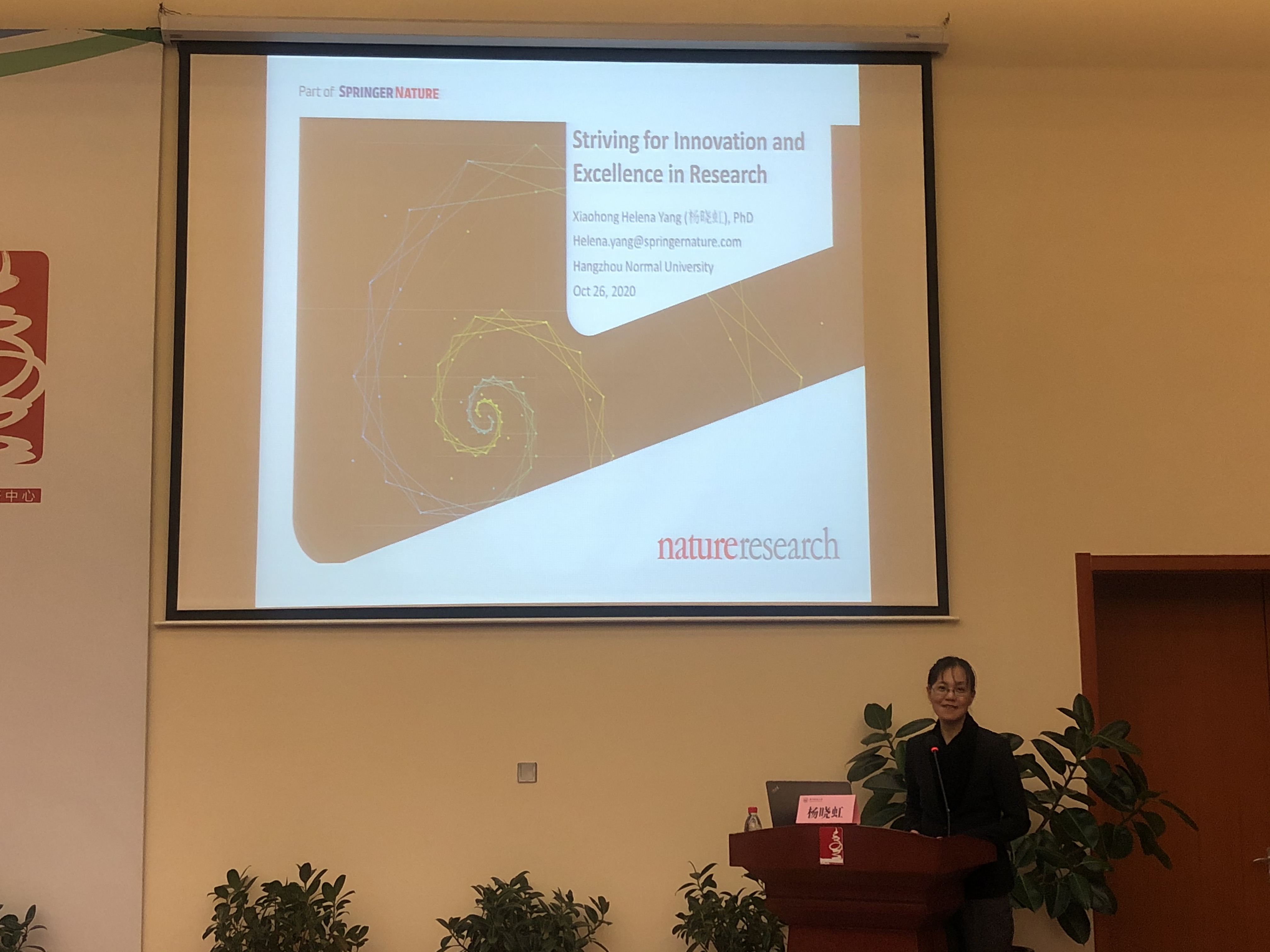 近日,生科院2020“生命与健康”学术论坛在城研中心召开,本次论坛的主题是“揭示生命奥秘,促进人类健康”,学术论坛邀请了Nature Research执行主编杨晓虹博士、杭州启函生物科技有限公司杨璐菡博士作专题报告。校长尚永丰院士应邀出席论坛,来自中国科学院生物物理研究所、北京大学、首都医科大学等国内知名高校的专家学者、我校生科院、医学院师生百余人参加了此次论坛。论坛由生命科学研究院院长邱猛生教授主持。