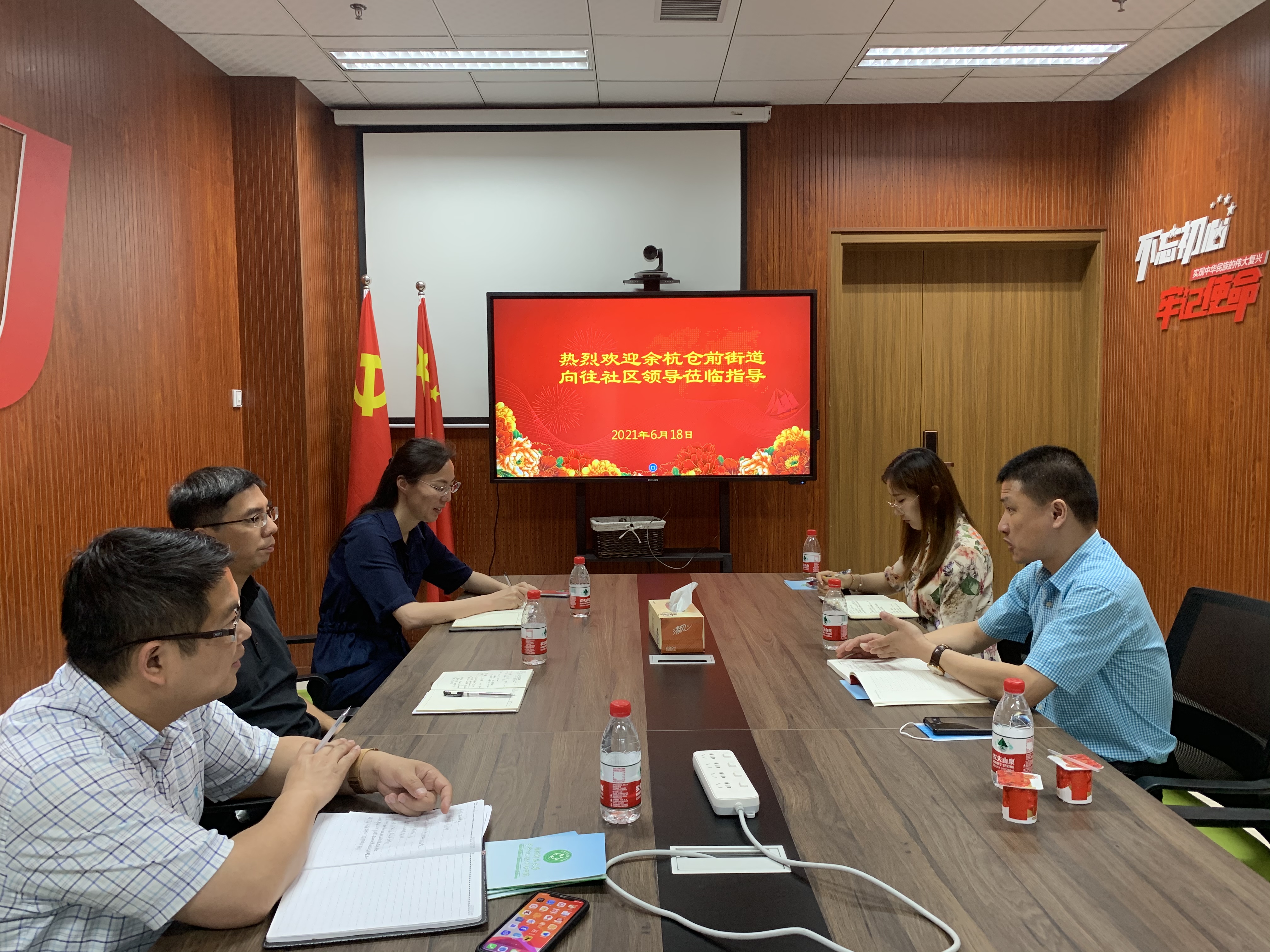 6月18日,余杭区仓前街道向往社区领导莅临51黑料 ,学院党委书记张立明、党委副书记余洁和办公室主任、组织员参与交流。