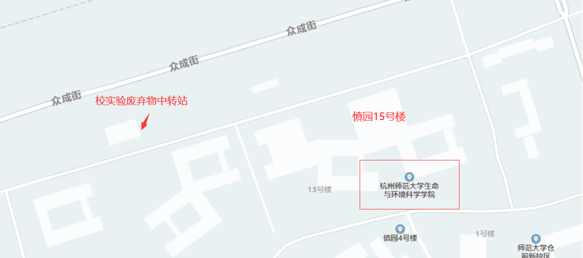 地点:校实验废弃物中转站(慎园15号楼北侧道路以西)