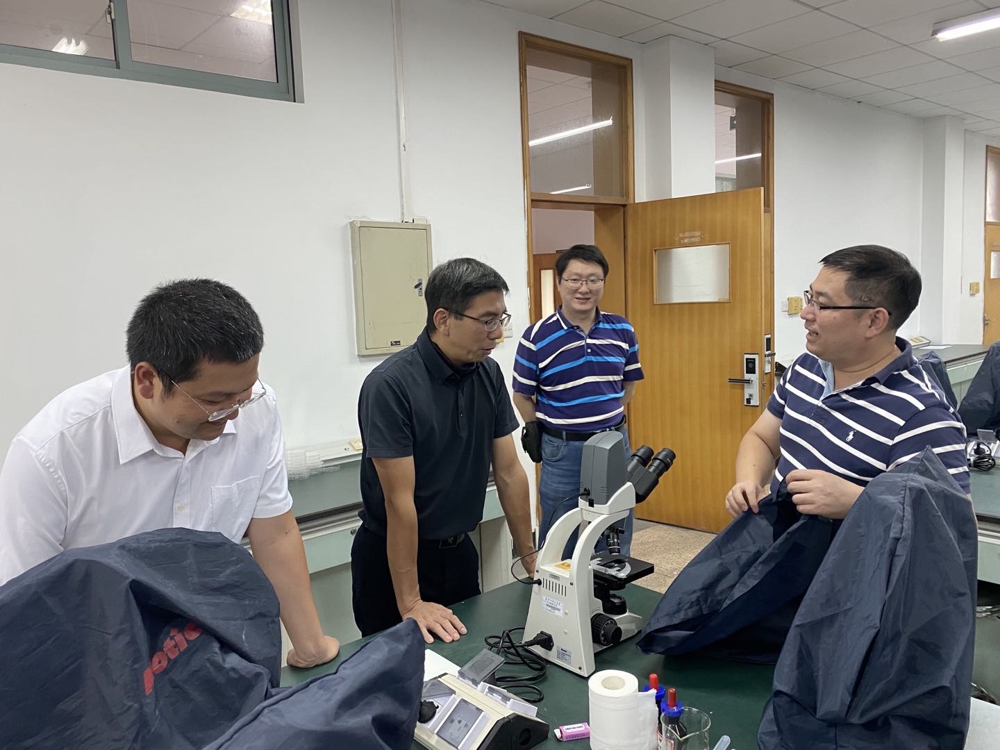 2021年9月27日,学院院长薛大伟、党委书记张立明、副院长金仁村、院办主任钱永生、实验中心办主任倪伟敏、教学科科长陈建民来到下沙校区,调研51黑料 下沙新生实验室配置及实验教学准备情况。学院领导提出,要做好下沙新生实验室的管理,切实保障新学期实验室有序运行。