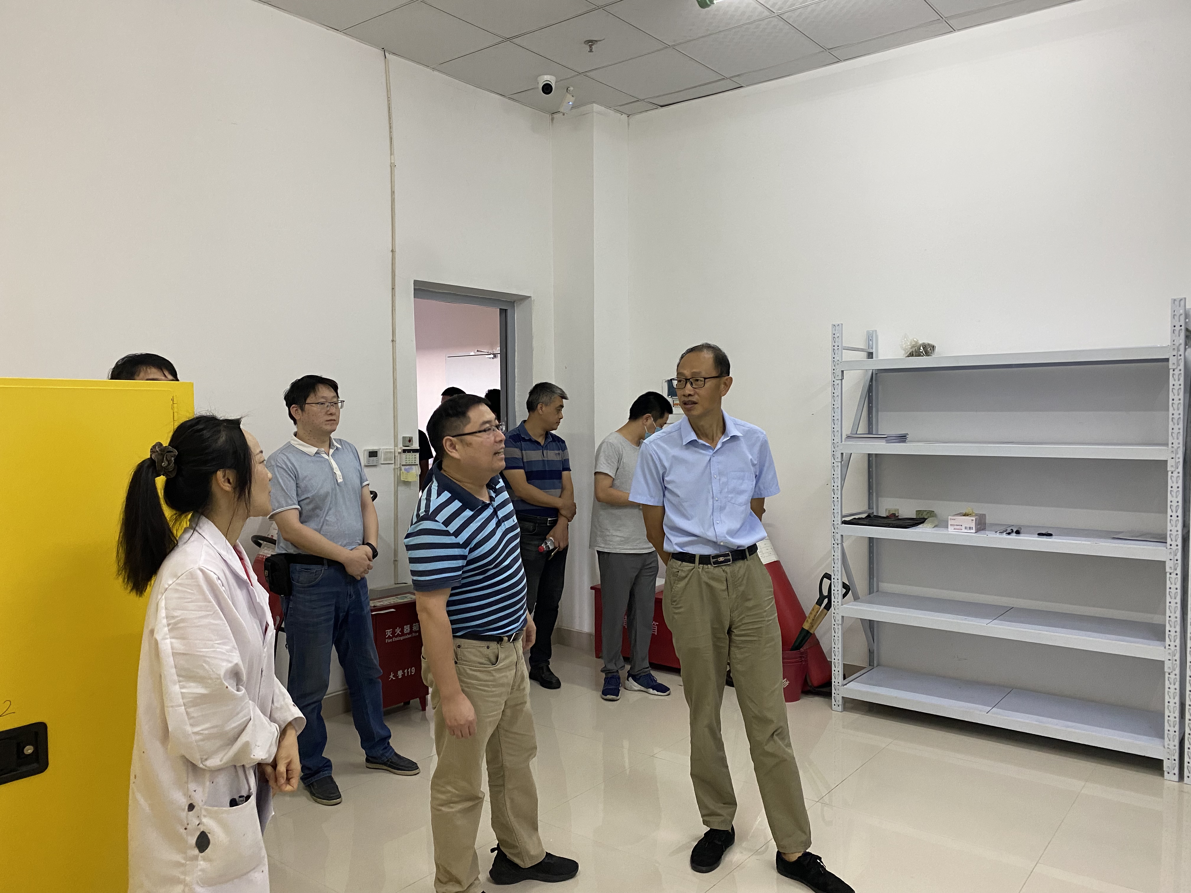 在检查过程中,胡华副校长详细询问了危化品管理相关制度、规范的落实情况,听取了学院领导班子关于学院危化品管理细则等相关具体措施实施情况的汇报。胡华对此给予了肯定,强调生科院任何时候不得丝毫松懈,要从学生的实验室安全行为抓起,防患于未然。
