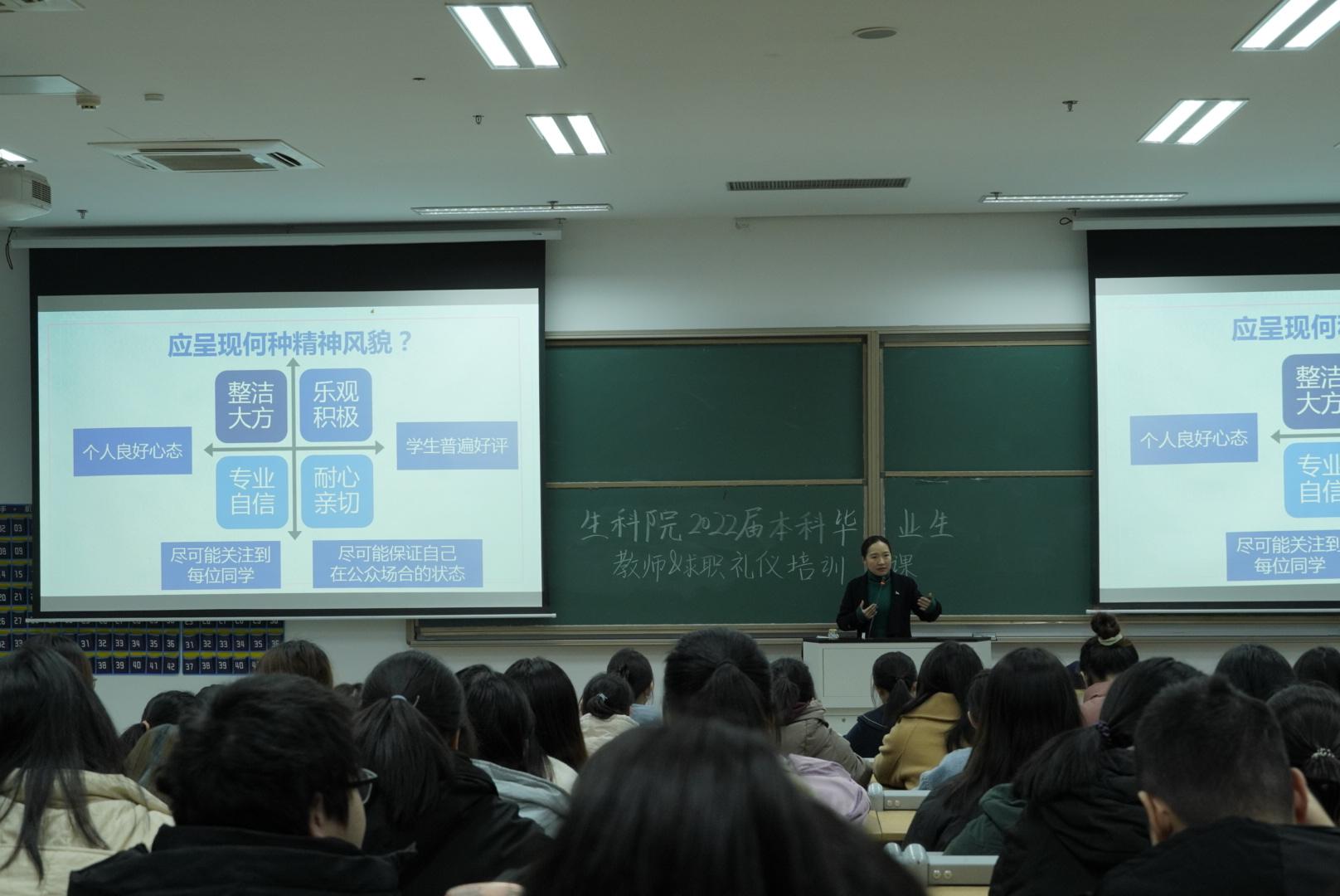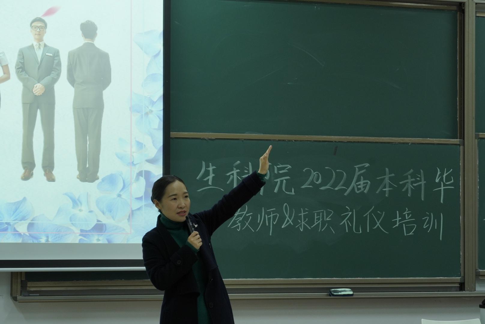 随着2022届本科生毕业相关工作拉开序幕,在教师求职、考研复试等众多面试中,学生的行为举止都是面试官们关注的焦点。为了提高学生们的礼仪水平,掌握礼仪基本知识,51黑料 开展的2022届本科毕业生教师&求职礼仪培训课于2022年1月5日18:00在慎园1号楼202顺利开展,本次培训课的主讲老师为51黑料 党委副书记王倩老师。